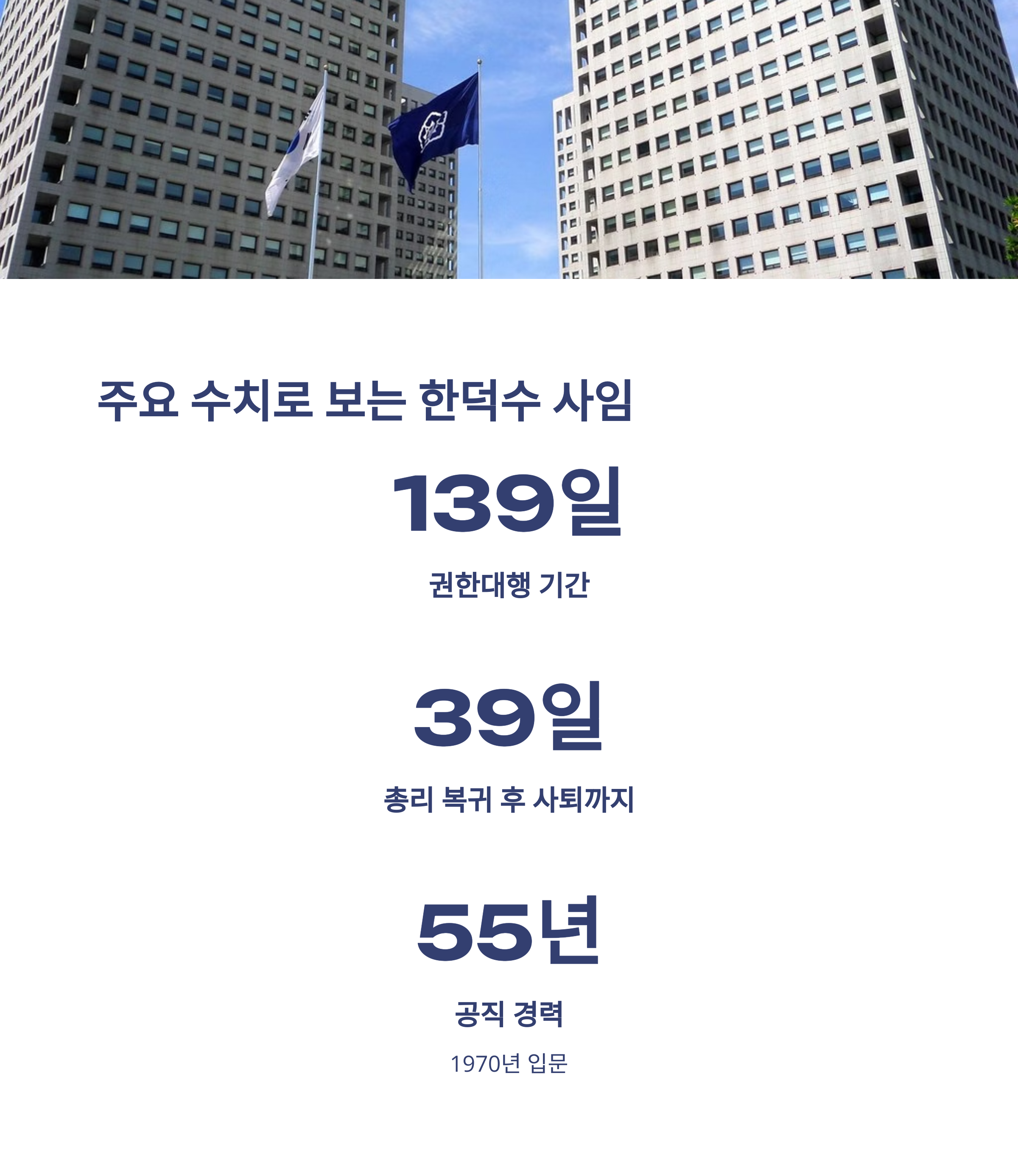 | 권한대행 시작 | 2024년 12월 14일 | 윤석열 대통령 탄핵 소추로 권한대행 취임 |