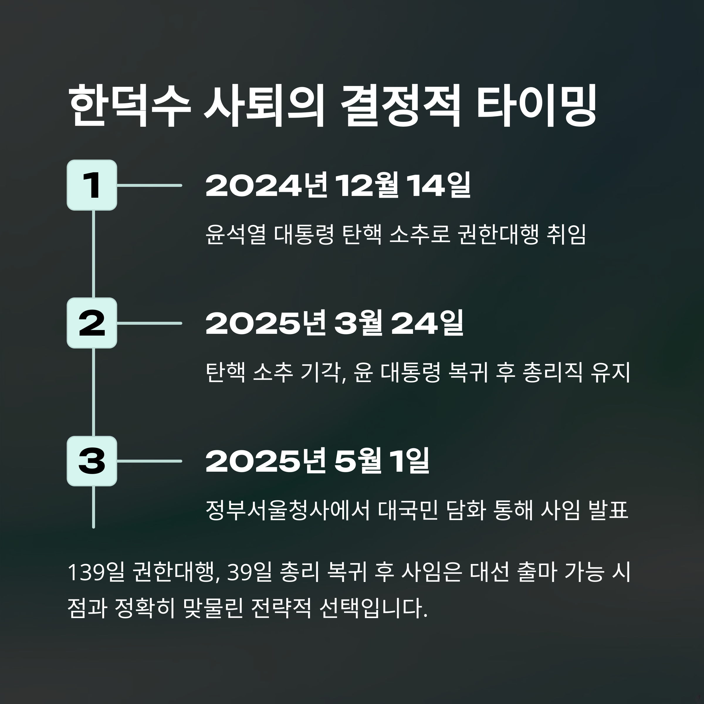 139일간의 권한대행, 그리고 39일의 총리 복귀. 모든 시간은 결국 2025년 대선의 서막을 향해 흐르고 있었습니다.