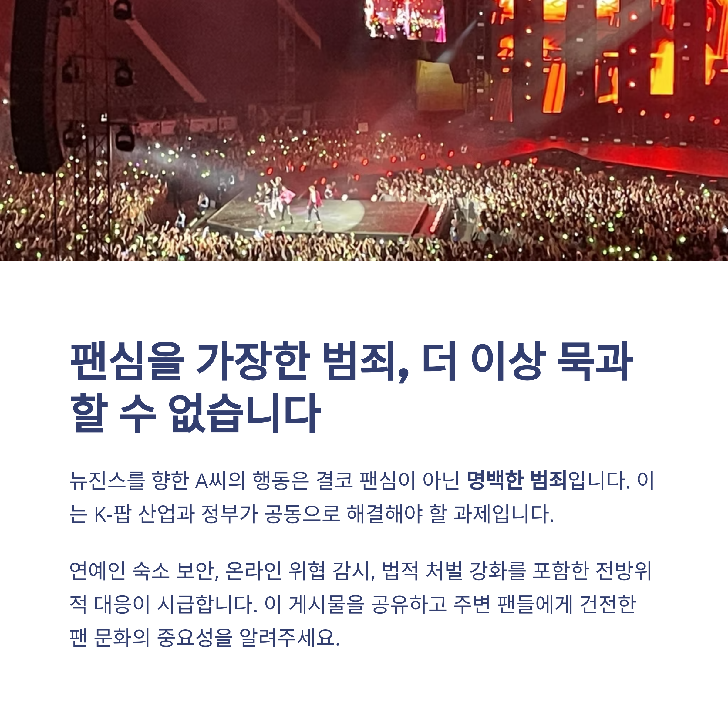 | 상징적 피해 | K-팝 스타의 프라이버시와 안전이 무너졌다는 경고 신호 |