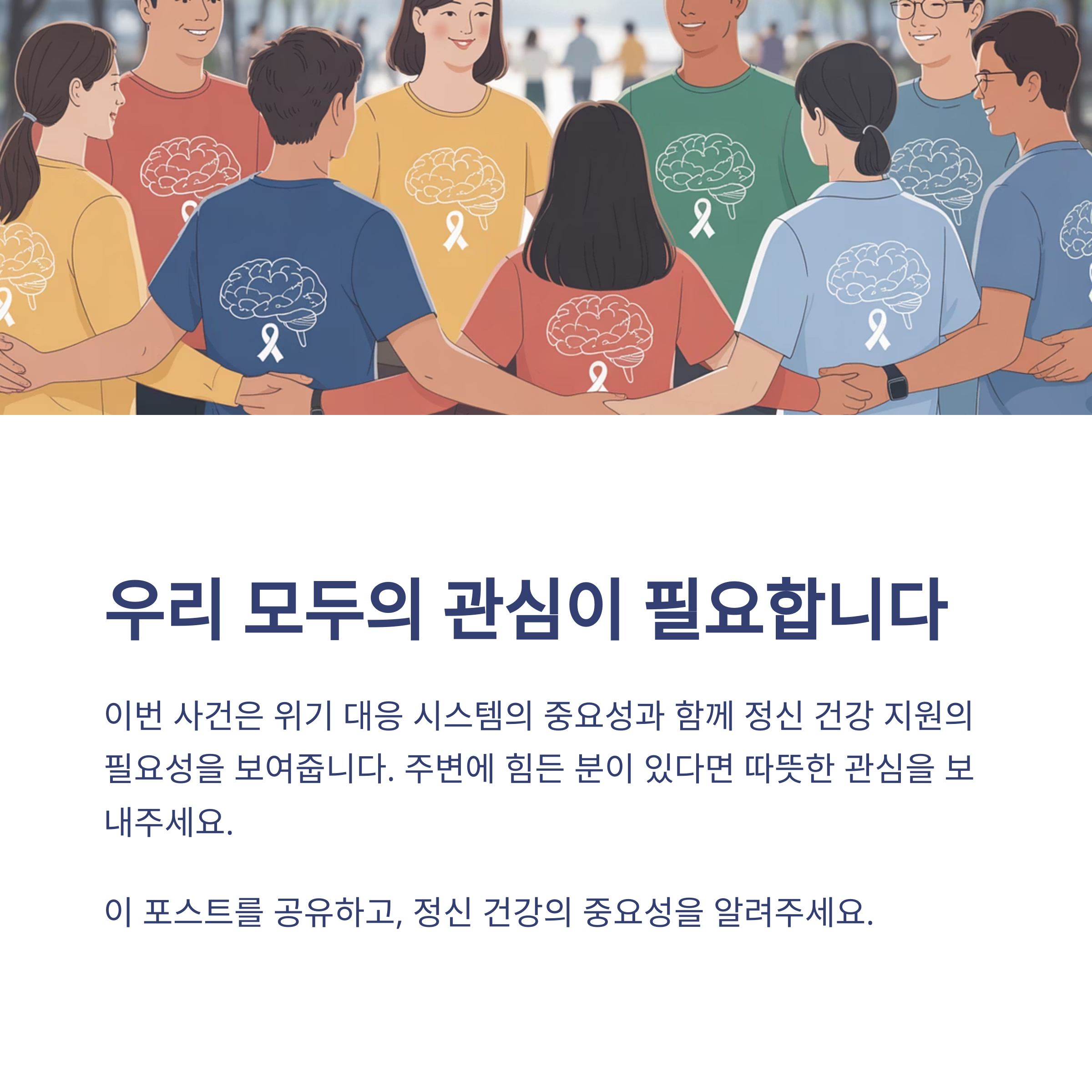 위기 대응 시스템의 효과성과 협업의 중요성을 보여준 사례로, 정신건강 지원 체계의 중요성도 함께 부각됐습니다.