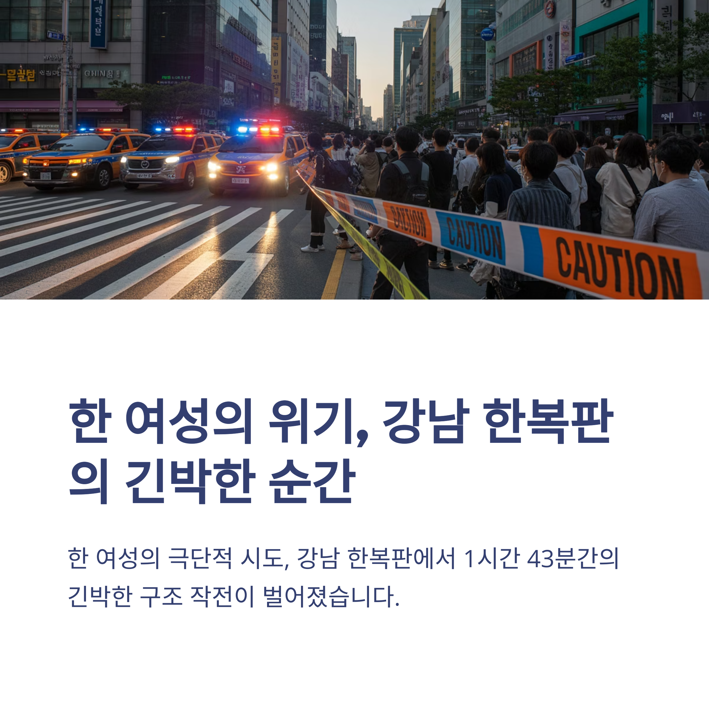 한 여성의 극단적 시도, 강남 한복판에서 1시간 43분간의 긴박한 구조 작전이 벌어졌습니다.
