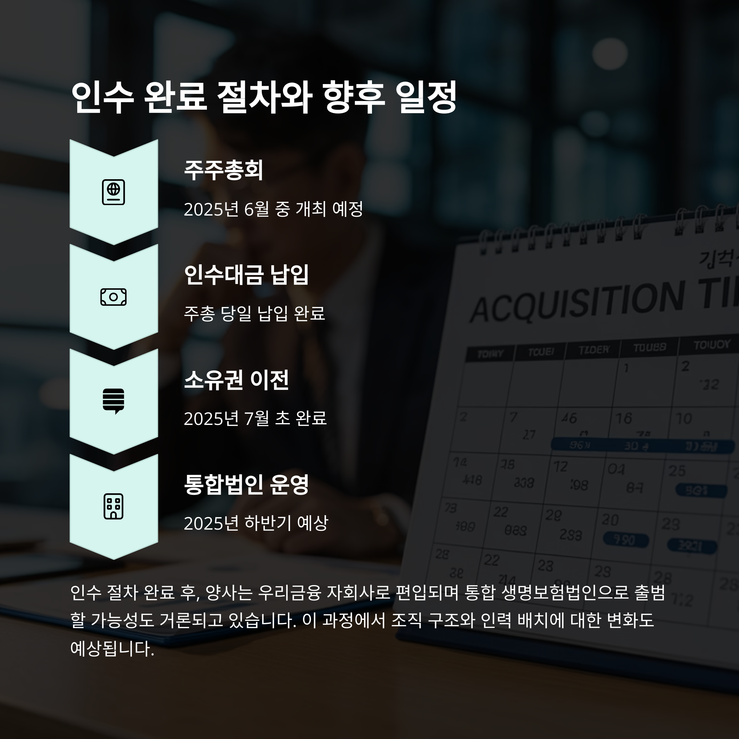 인수 완료 절차 및 향후 일정