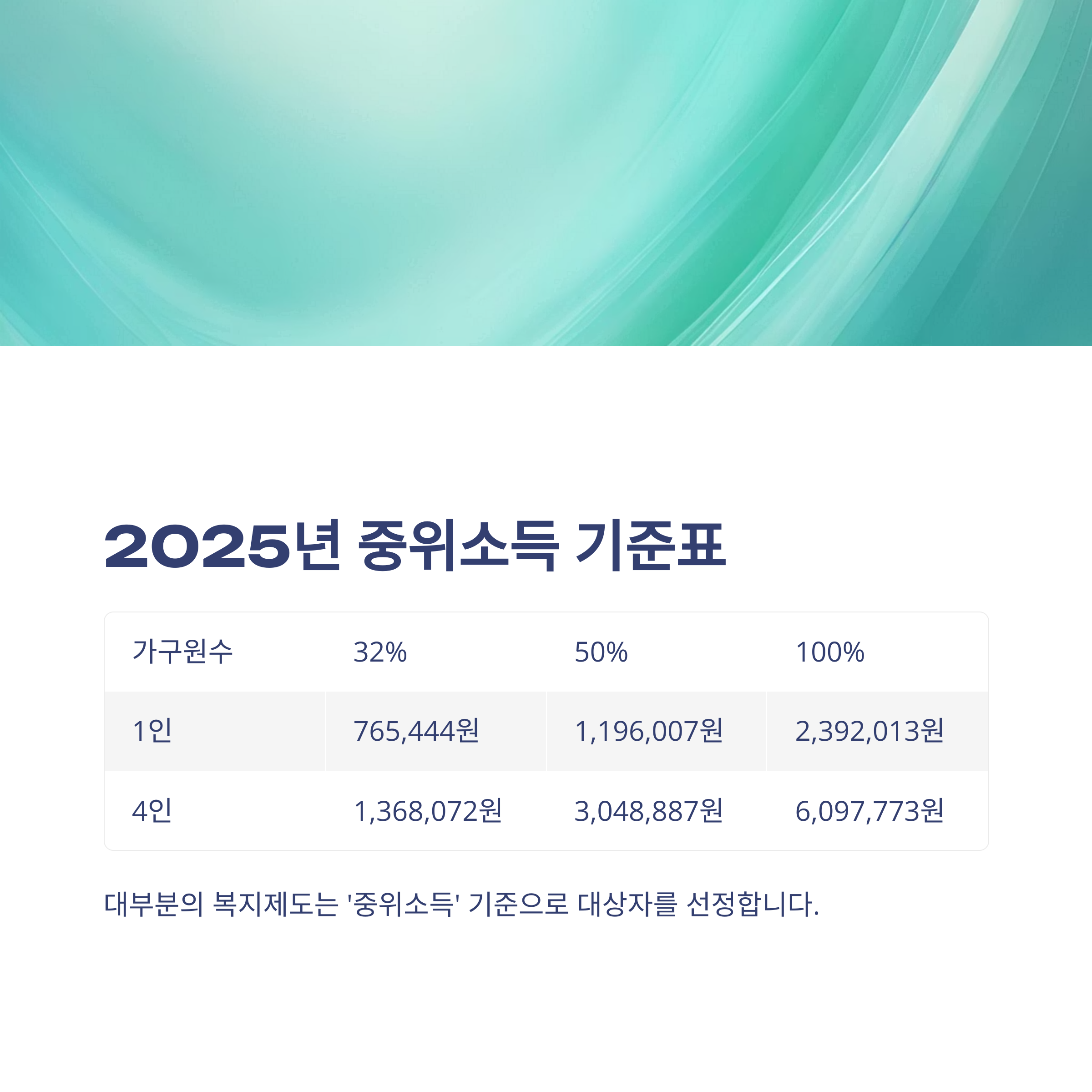 2. 2025년 중위소득 기준표