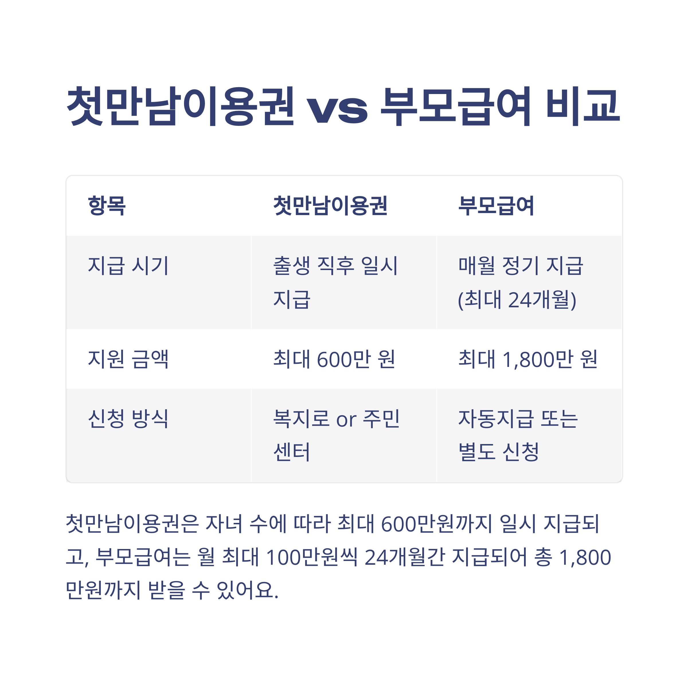 첫만남이용권, 부모급여 상세 비교