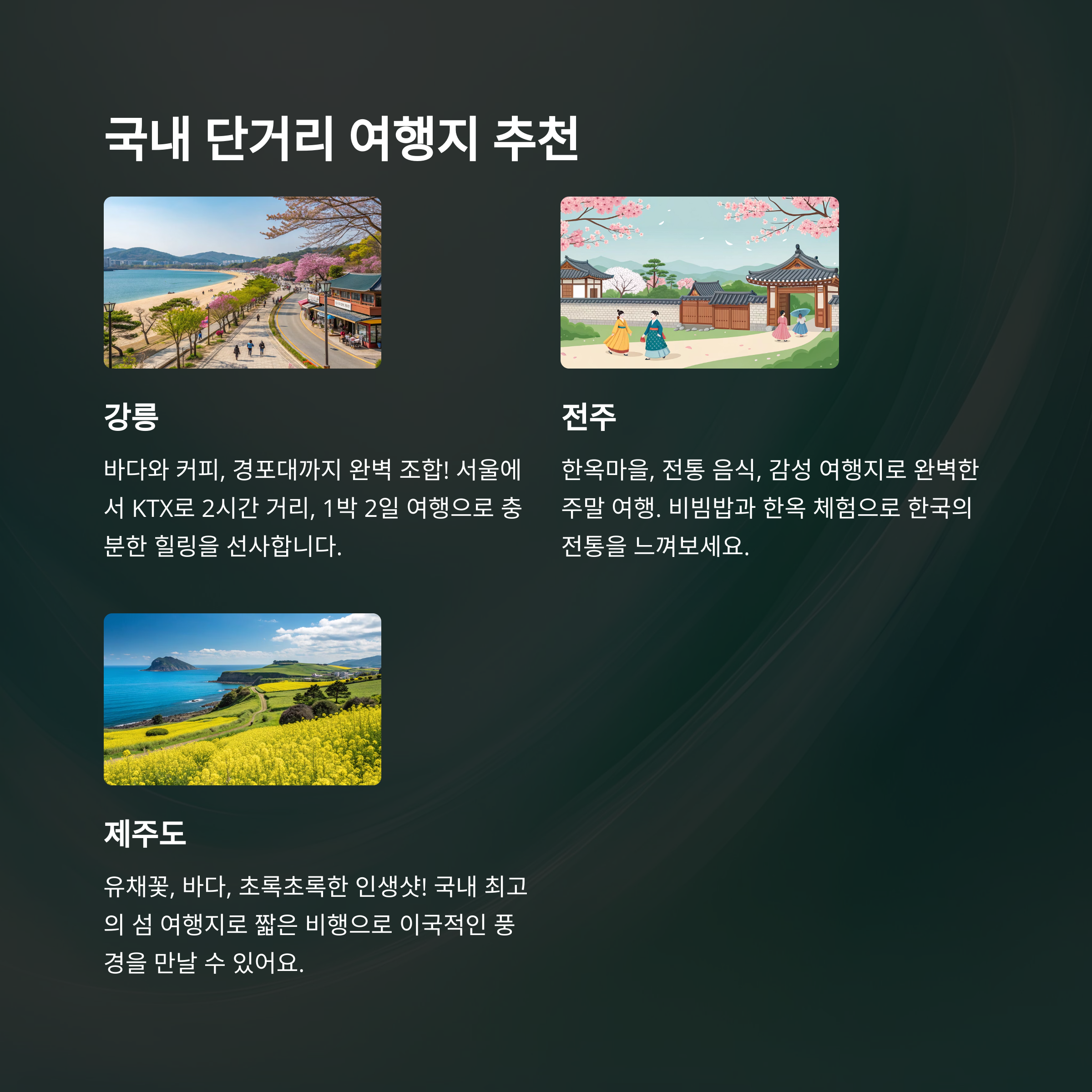 황금연휴여행, 5월연휴, 단거리여행지, 베트남푸꾸옥, 후쿠오카여행, 강릉여행, 가성비여행, 연차활용, 제주도, 전주한옥마을