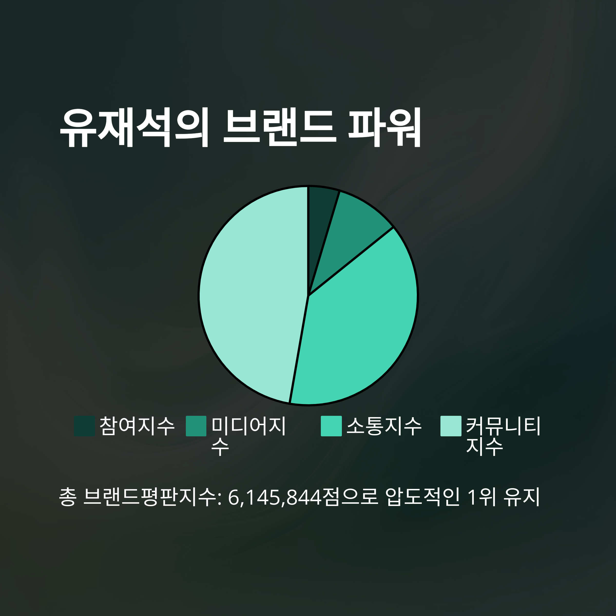 전월 대비 6.09% 하락했지만, 유재석은 여전히 타의 추종을 불허하는 수치로 1위를 유지하고 있습니다. 대중과의 꾸준한 소통과 신뢰가 만들어낸 결과라 할 수 있죠.