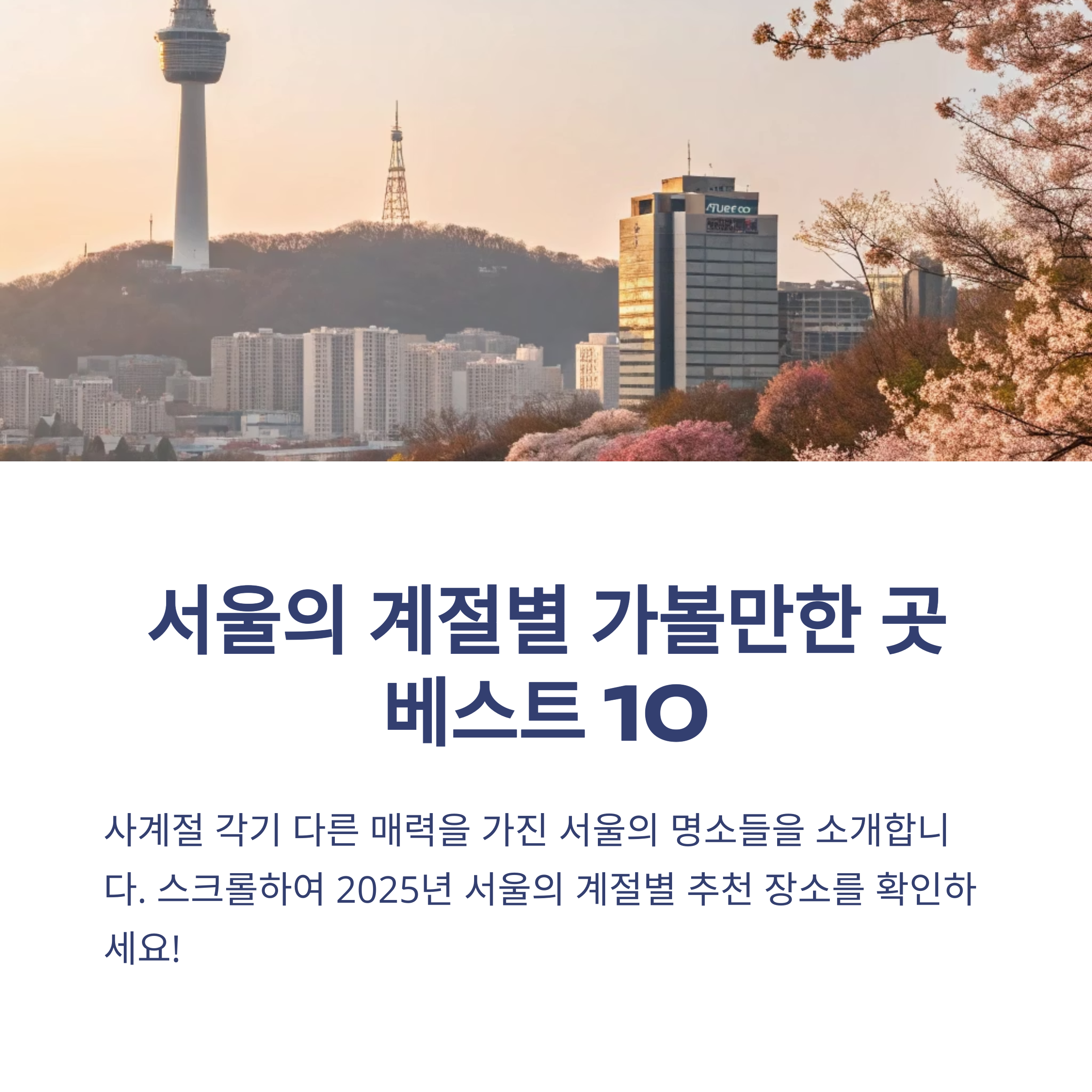 안녕하세요! 날씨 좋은 5월, 서울은 어느 때보다 활기찬 분위기로 가득합니다. 계절이 바뀔 때마다 저는 서울 곳곳을 여행하며 매번 새로운 풍경과 이벤트를 경험하곤 해요. 그래서 오늘은 서울을 대표하는 계절별 명소들을 여러분께 소개해드릴까 합니다. 축제와 자연, 문화와 설경까지—서울의 사계절을 즐길 수 있는 베스트 10 장소! 알찬 서울 여행을 계획하시는 분들이라면 절대 놓치지 마세요.