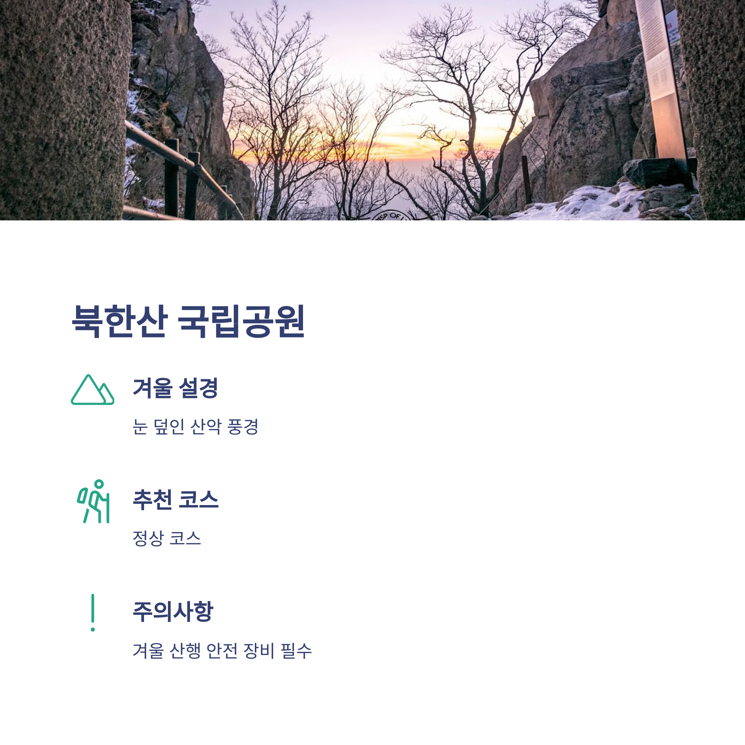 - 북한산 국립공원 – 겨울 등산과 설산 감상의 명소