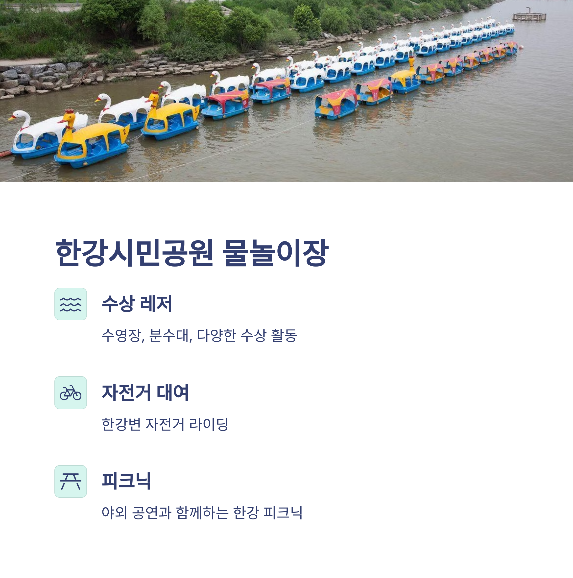 - 한강시민공원 물놀이장 – 수영장과 자전거, 야외 산책로까지 여름철 인기 명소