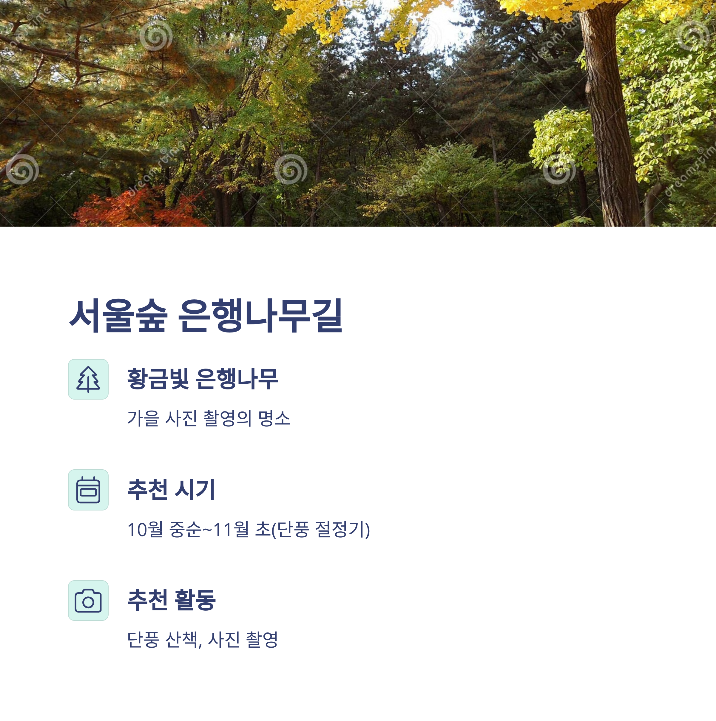 서울의 가을은 어디보다 화려합니다. 노랗게 물든 은행나무길부터 거리 예술까지, 예술적 분위기와 자연이 조화를 이루는 계절입니다.
