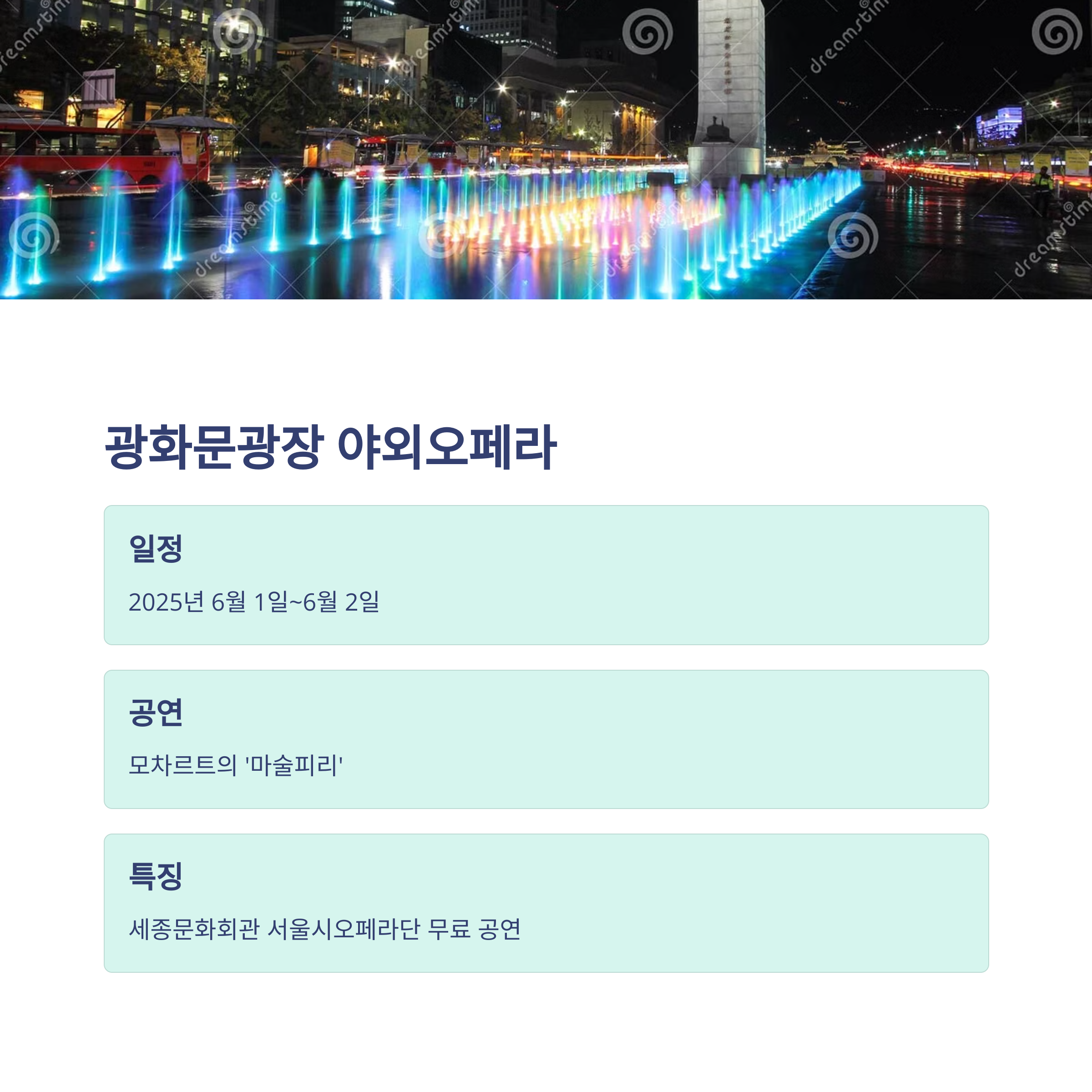 - 광화문광장 야외오페라 – 여름밤 모차르트 오페라를 무료로 감상