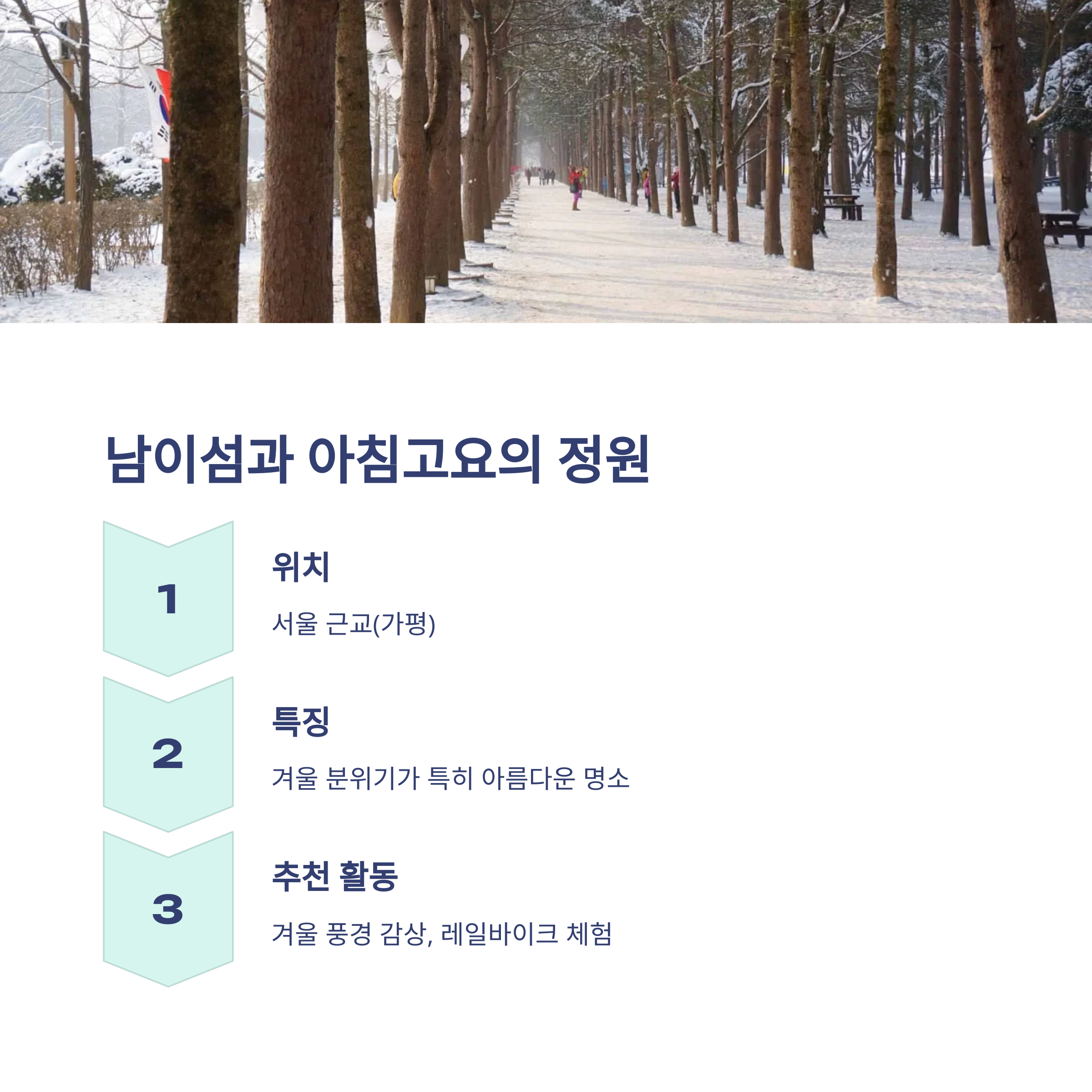 - 남이섬 & 아침고요수목원 – 서울 근교 겨울 감성 여행지