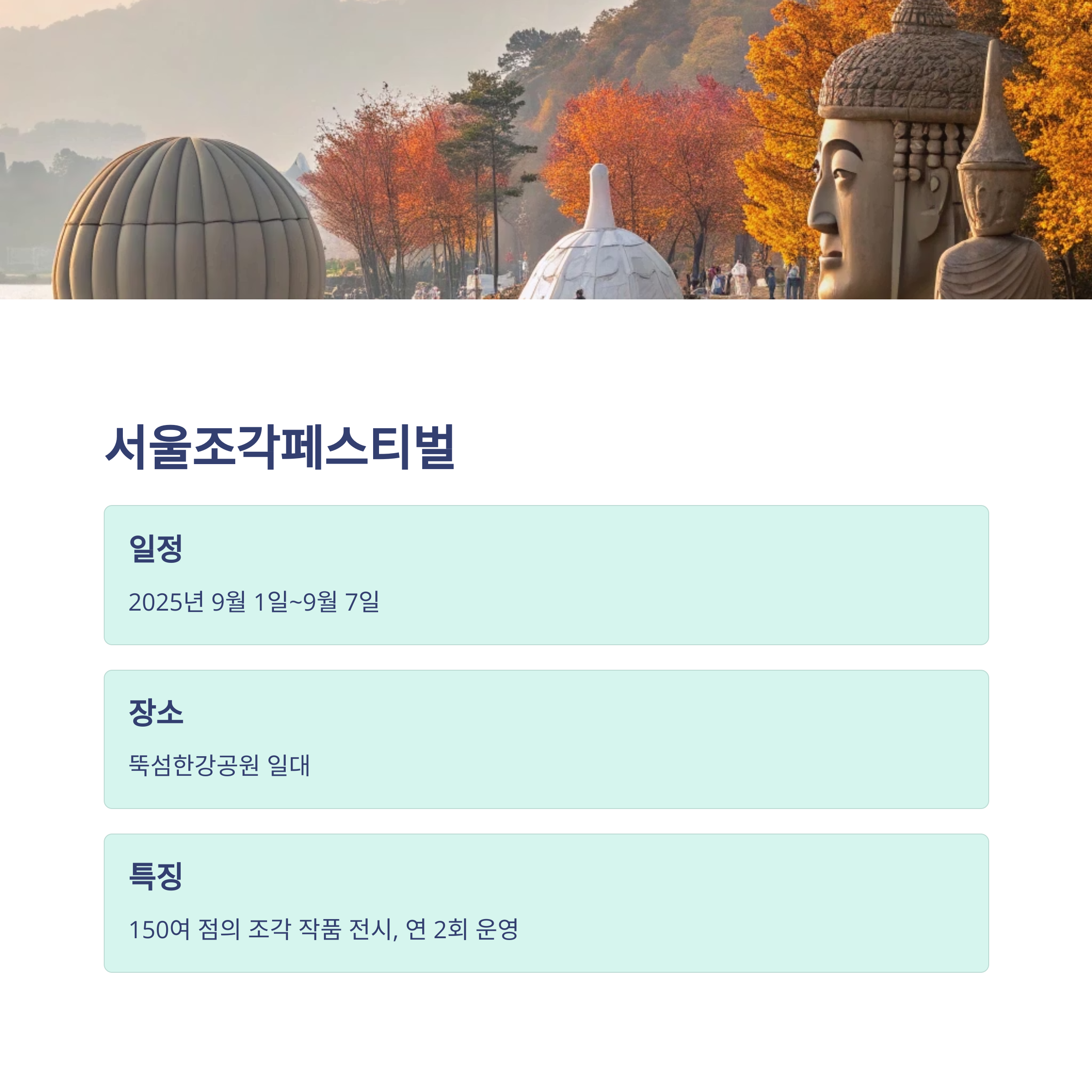 - 서울조각페스티벌 – 야외 조각 작품과 한강이 어우러진 문화 행사