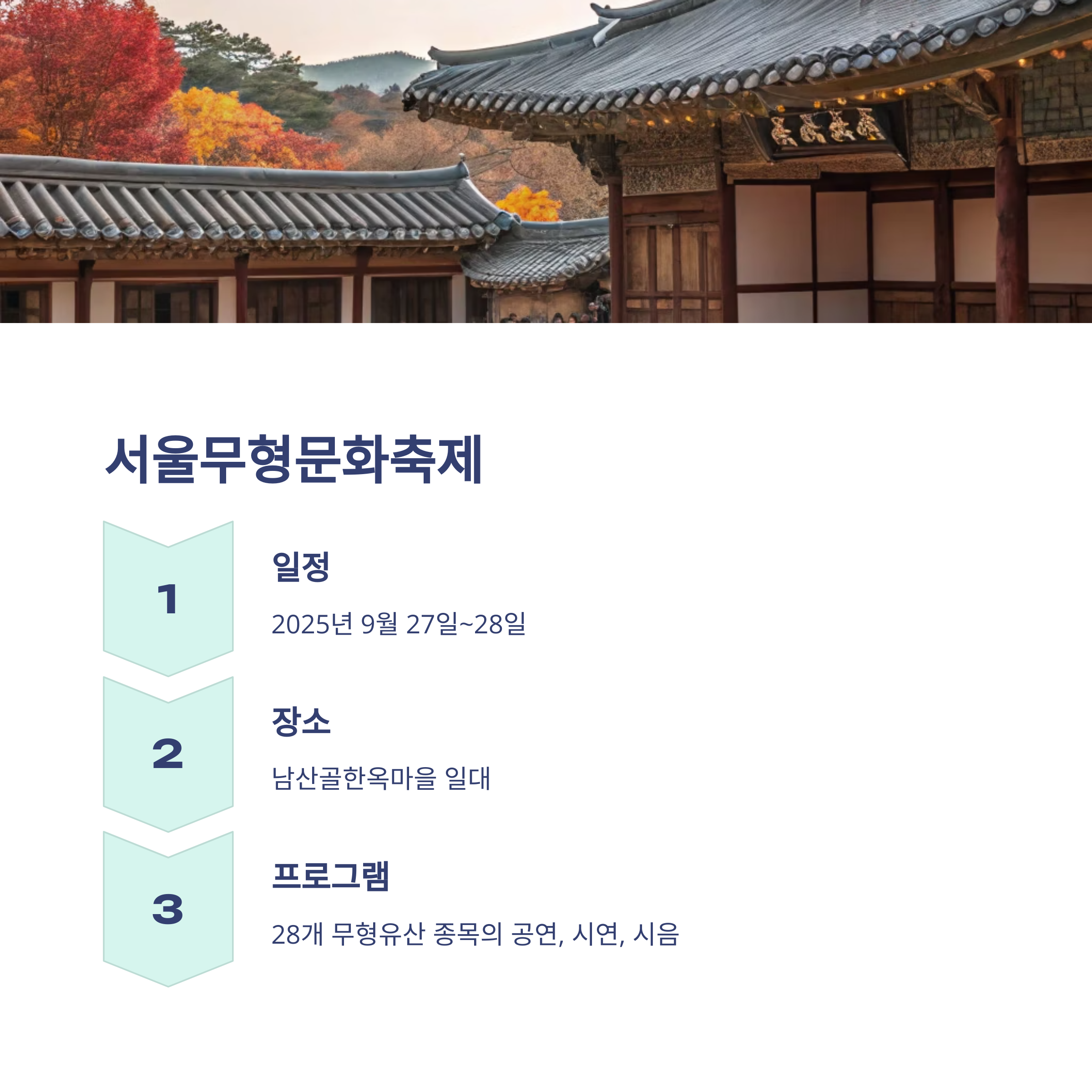 - 서울무형문화축제 – 남산골한옥마을에서 전통문화를 오감으로 체험