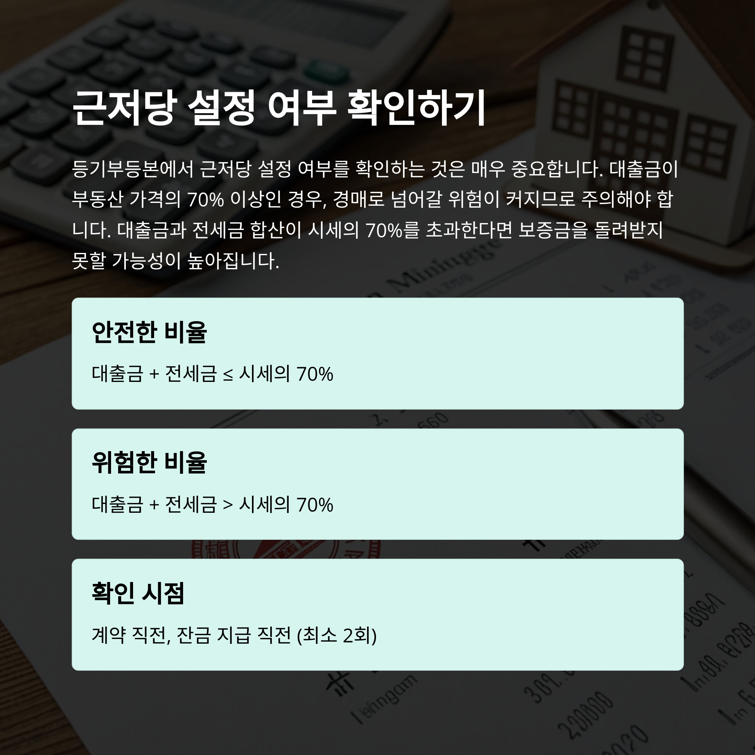 | 근저당 설정 여부 | 대출 비율이 시세 대비 70% 초과 시 위험 |