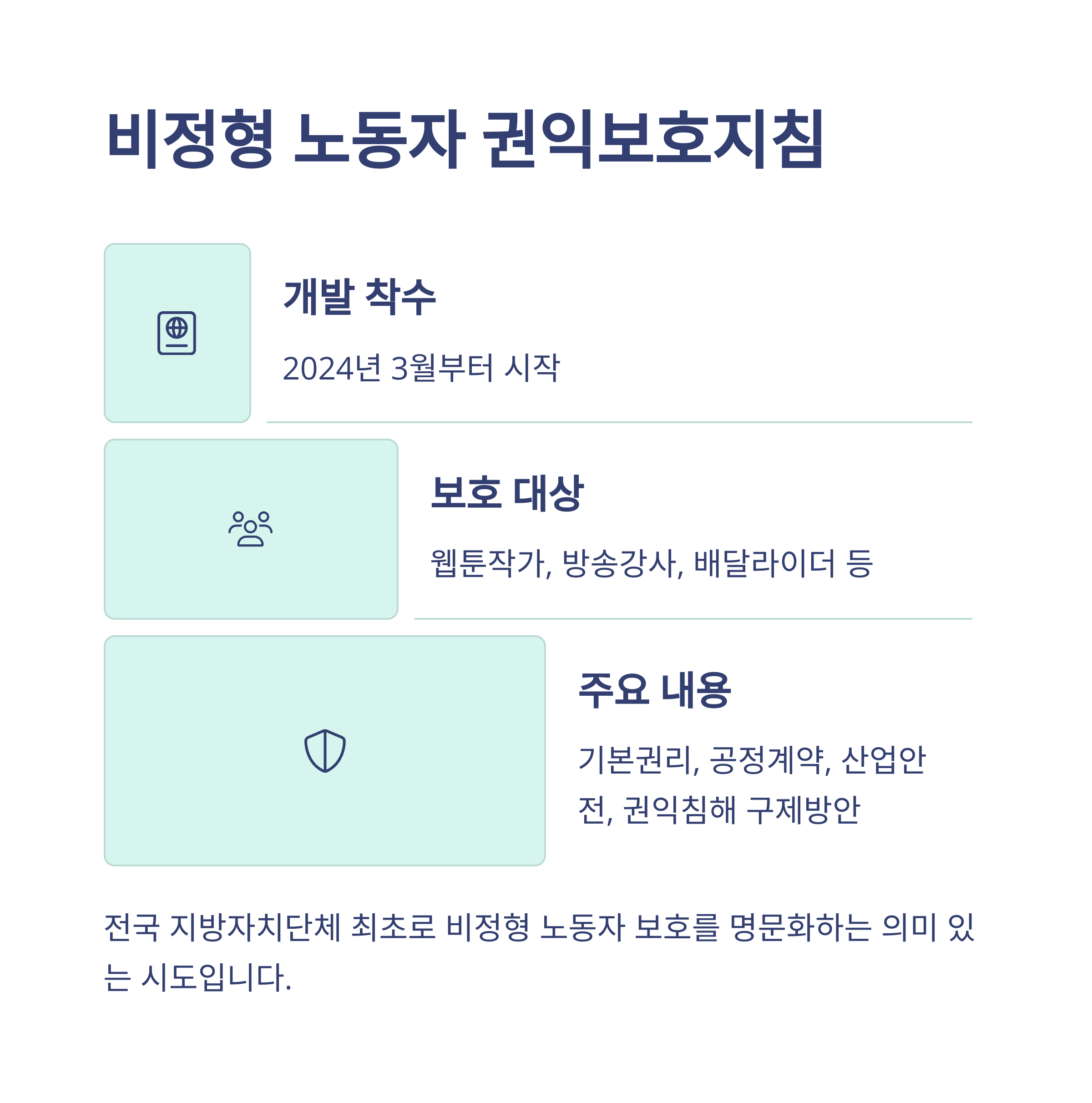 - 권익보호지침: 웹툰작가·배달기사 등 대상의 권익 보호 지침 최초 마련