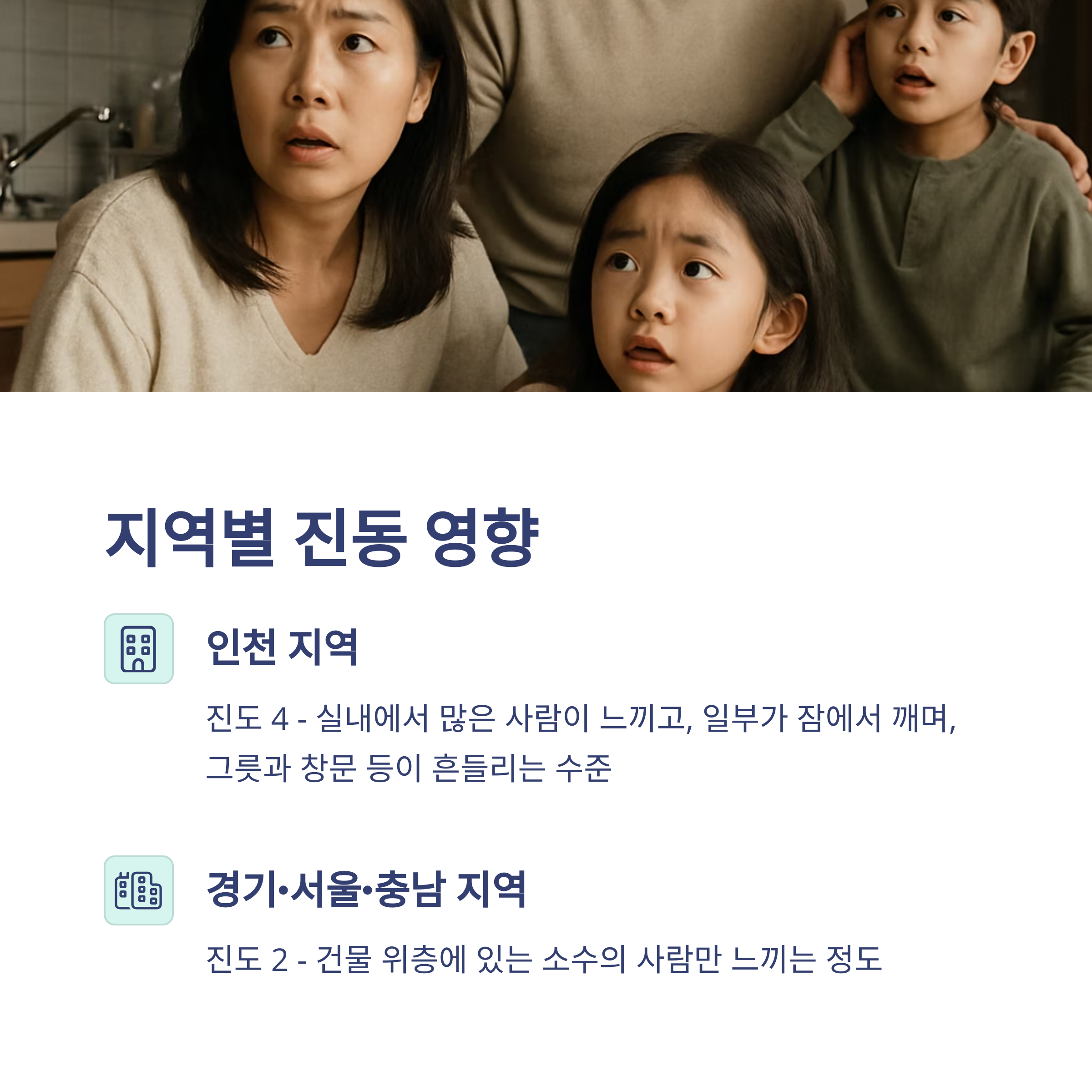 | 인천 | 진도 4 | 실내에서 대부분 인지, 잠에서 깬 사례 다수 |