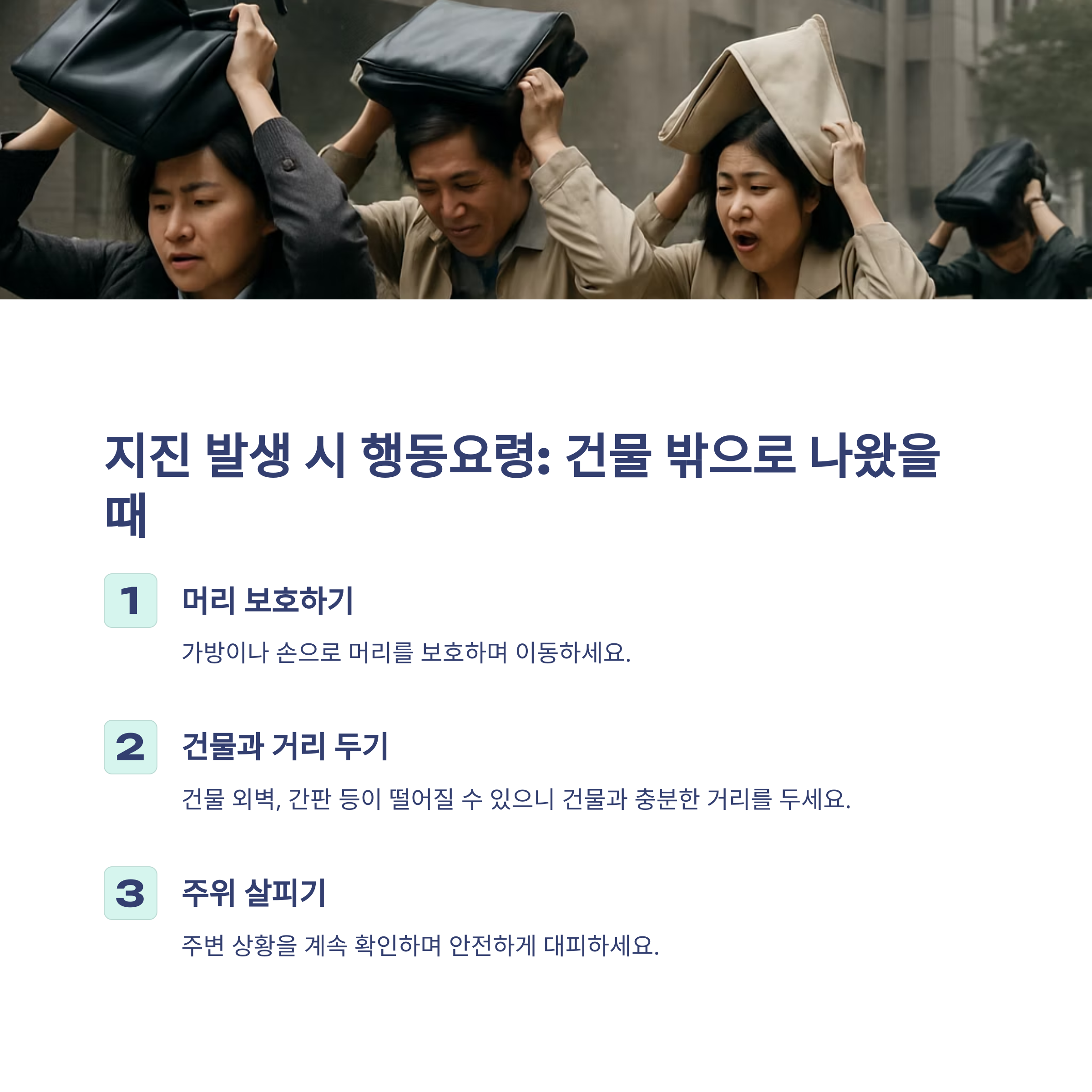 지진은 예고 없이 찾아오기 때문에, 평소 행동요령을 숙지하고 훈련하는 것이 매우 중요합니다. 특히 실내와 실외에서의 대처 방법은 다르기 때문에 상황에 맞는 대응이 필요합니다.