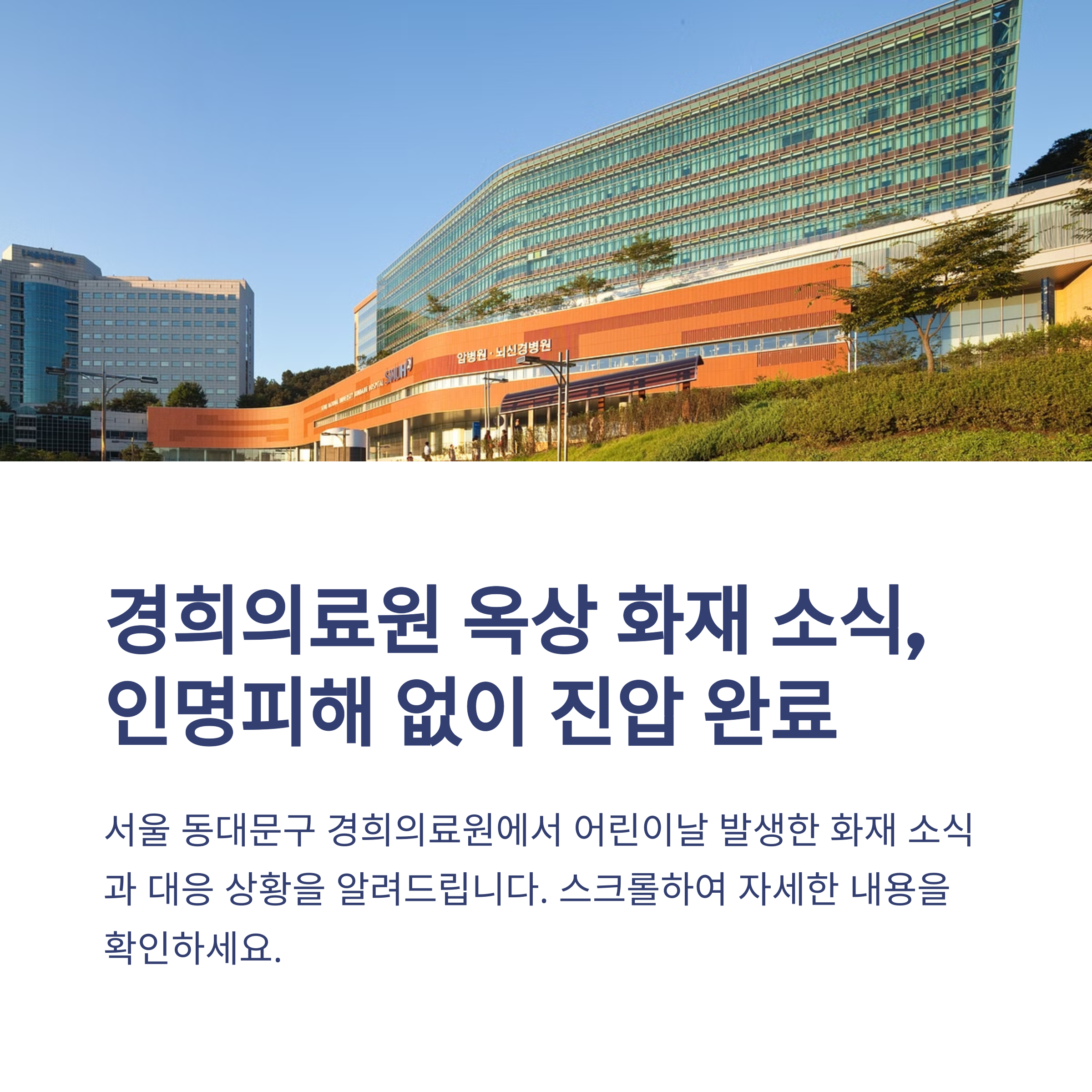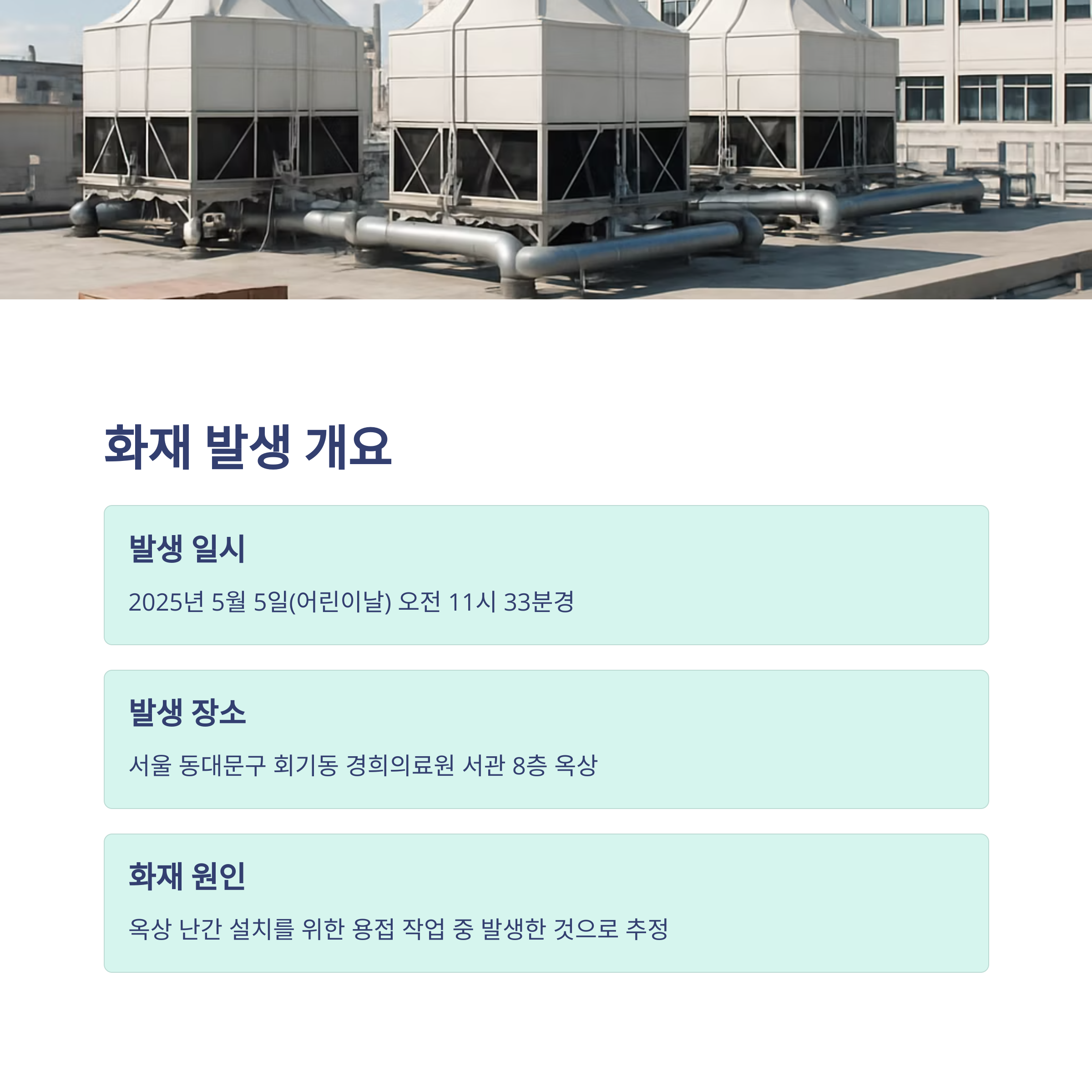 태그: 경희의료원, 화재사고, 병원안전, 소방대응, 어린이날사건, 서울화재, 용접작업, 옥상화재, 응급대응, 인명피해없음