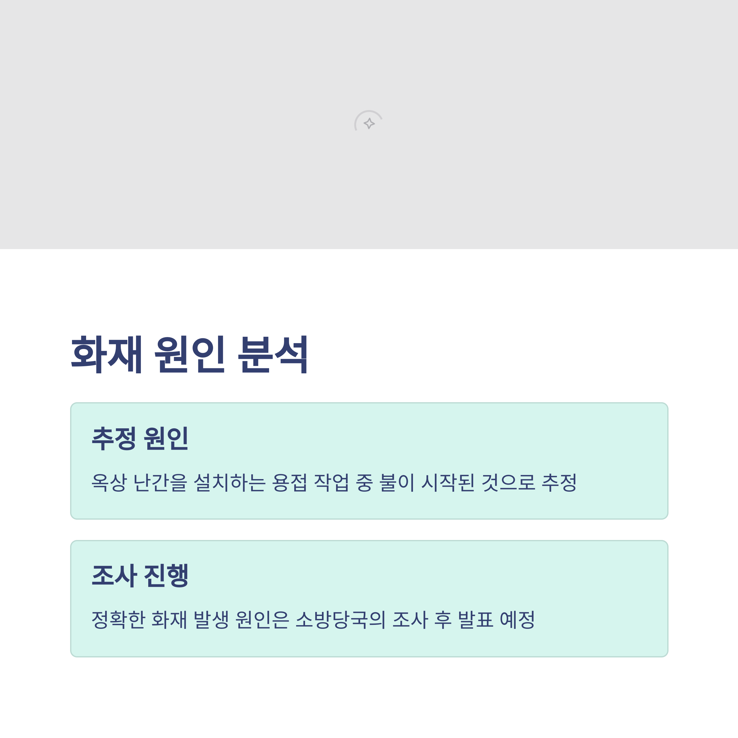 | 화재 원인 | 용접 작업 중 발생한 불꽃이 원인으로 추정 |