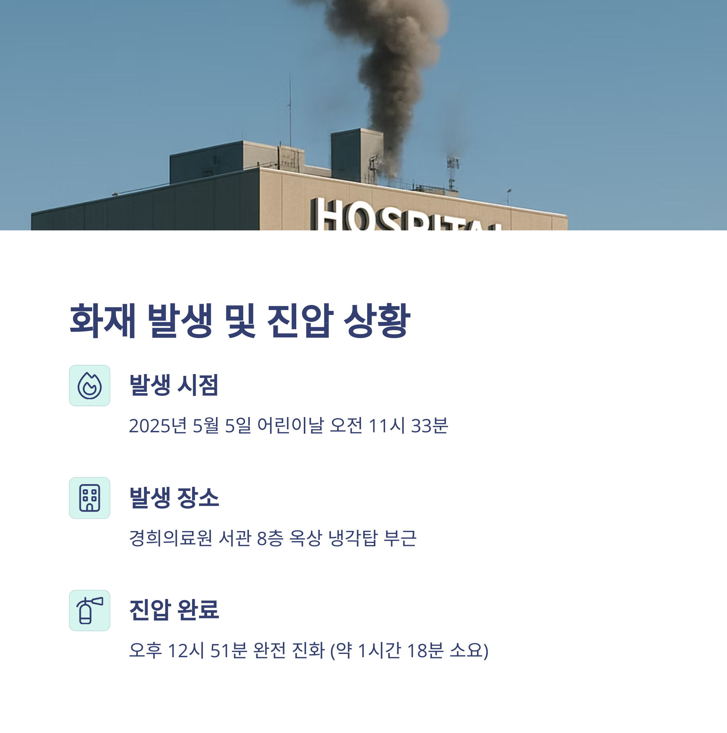 태그: 경희의료원, 화재사고, 병원안전, 소방대응, 어린이날사건, 서울화재, 용접작업, 옥상화재, 응급대응, 인명피해없음