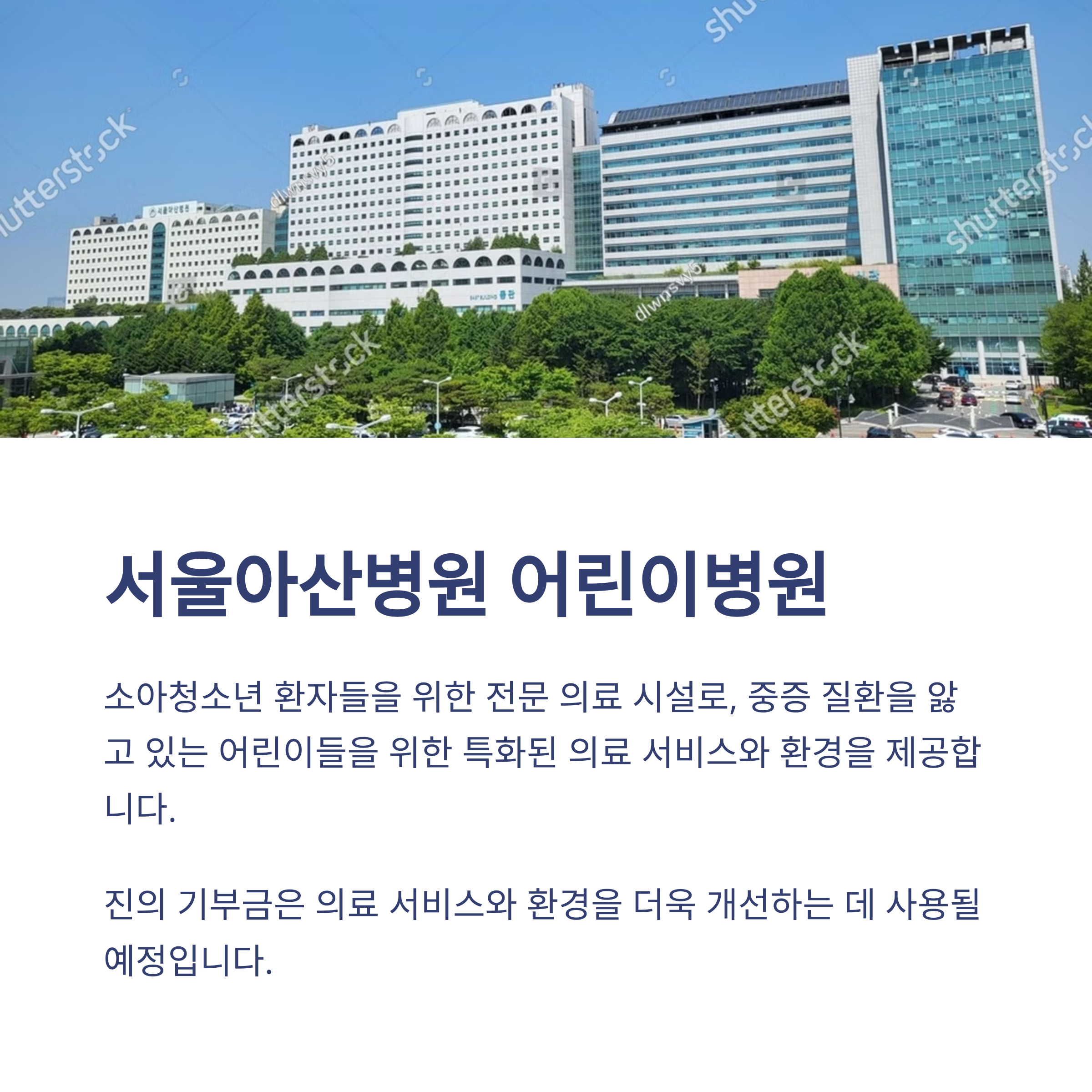 | 기부처 | 서울아산병원 어린이병원 |
