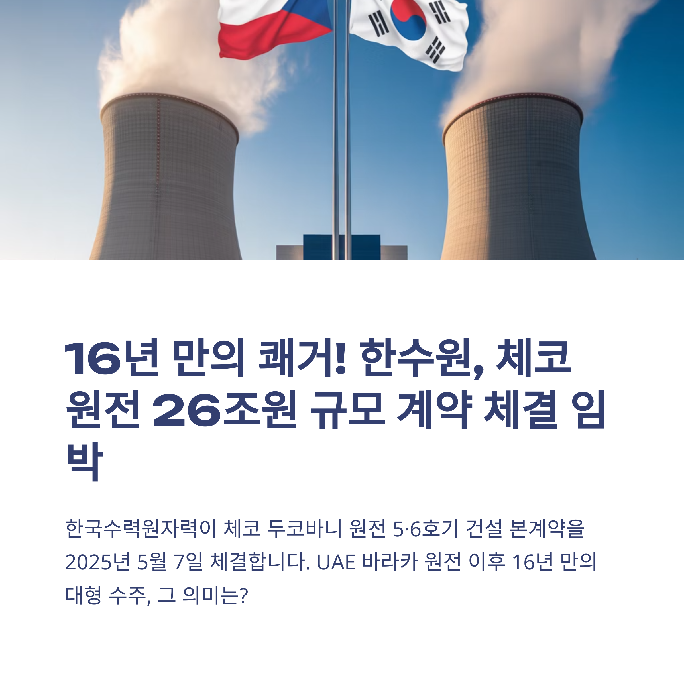 안녕하세요 여러분! 세계 무대에서 한국의 기술력과 신뢰도가 다시 한 번 빛나는 순간이 찾아왔습니다. 한국수력원자력이 체코와의 대규모 원전 계약을 따냈다는 놀라운 소식, 들어보셨나요?