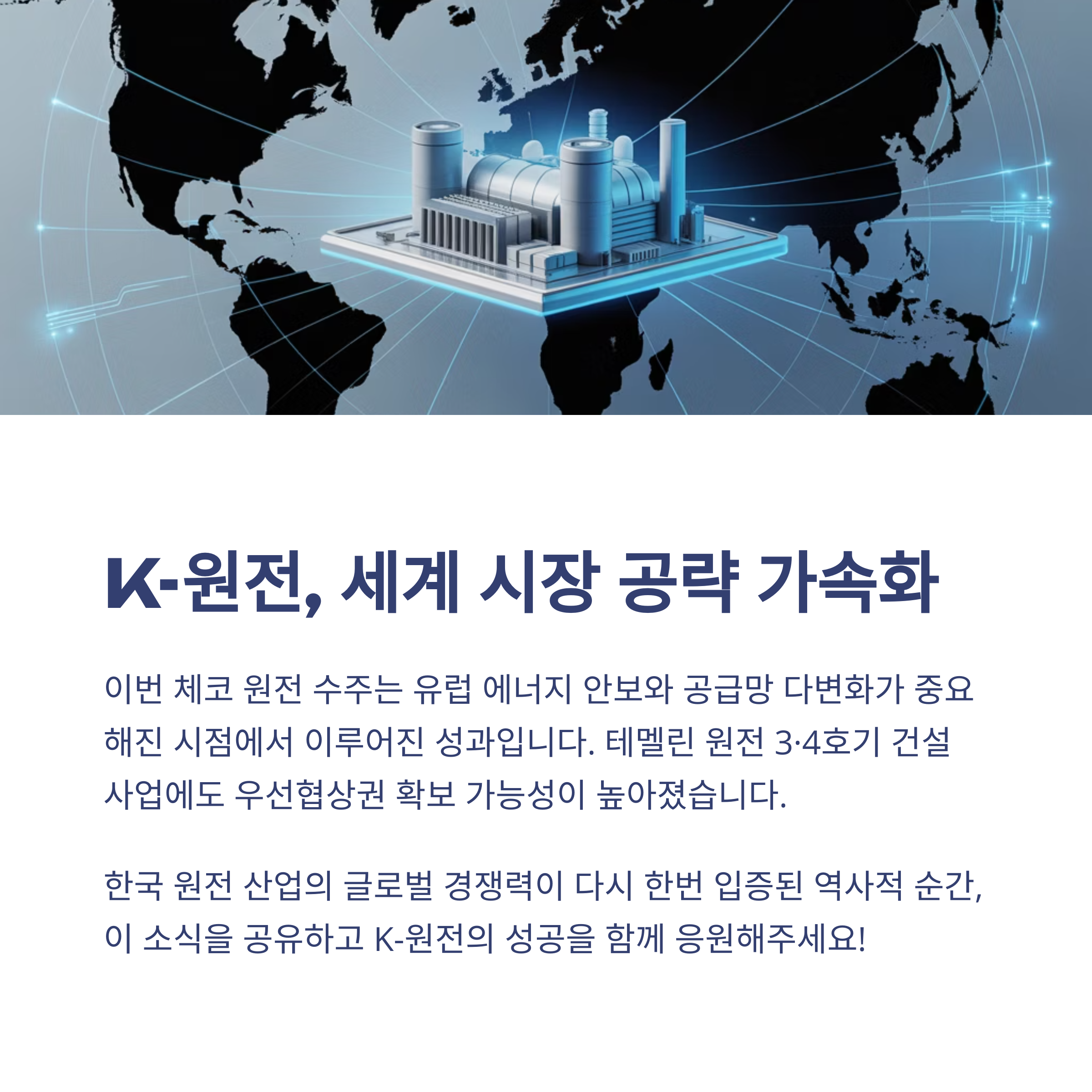 특히 ‘K-원전’의 명성이 글로벌 무대에서 다시 한번 빛을 발했다는 점이 너무나도 자랑스럽네요.