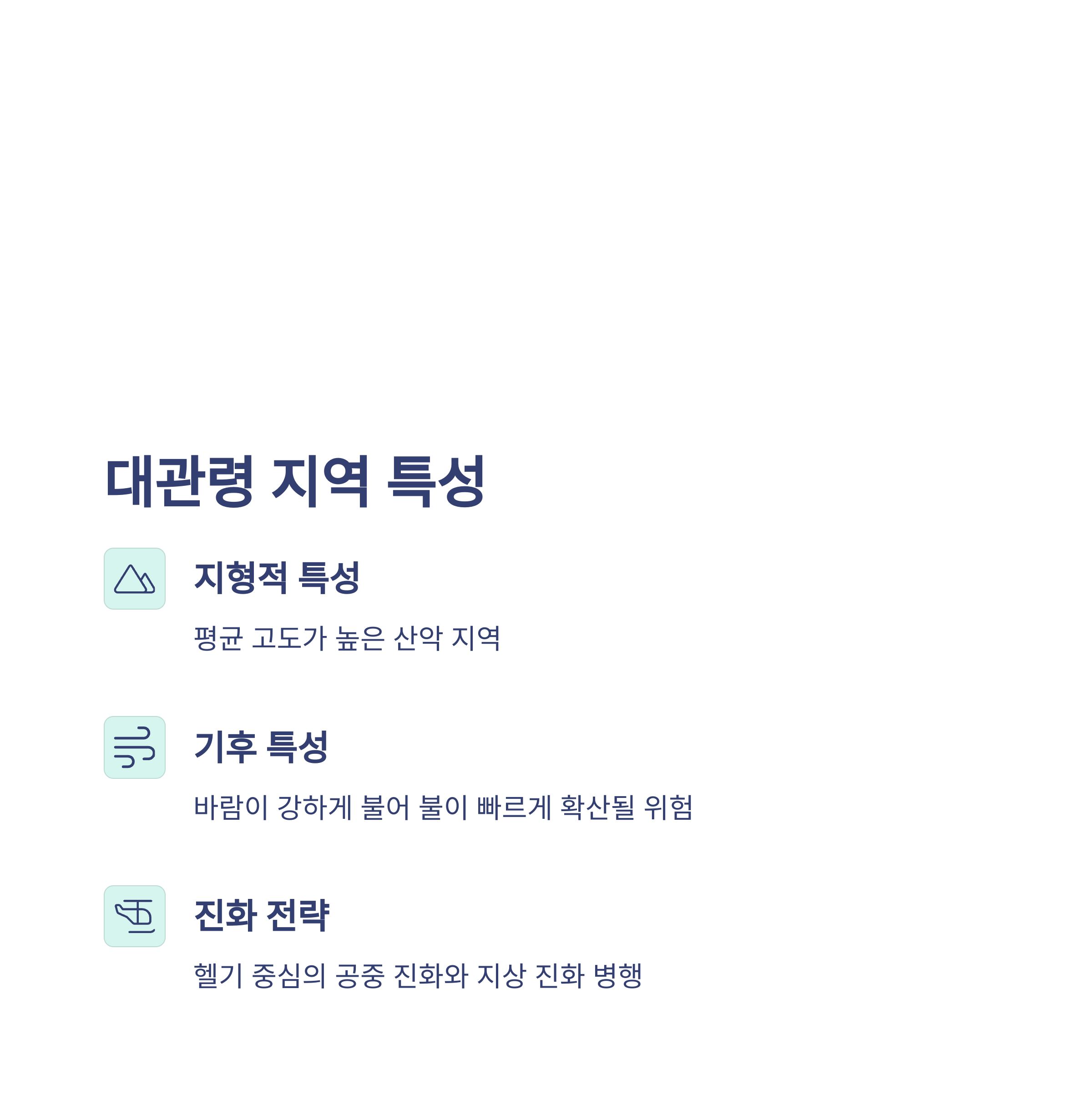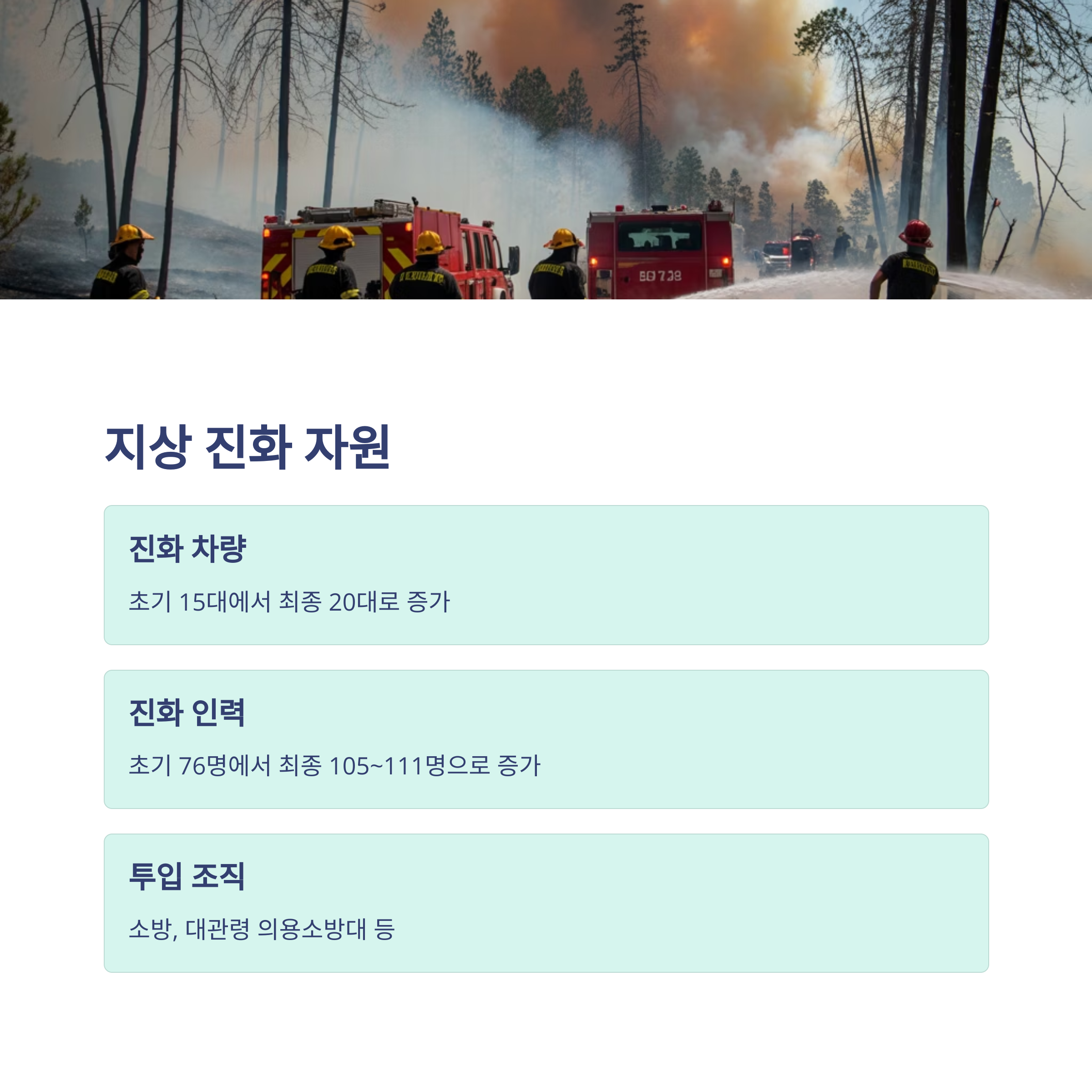 헬기를 통한 공중 진화와 지상 차량 및 인력을 동시에 배치하는 이중 대응 전략을 펼친 것이 큰 효과를 발휘했습니다.