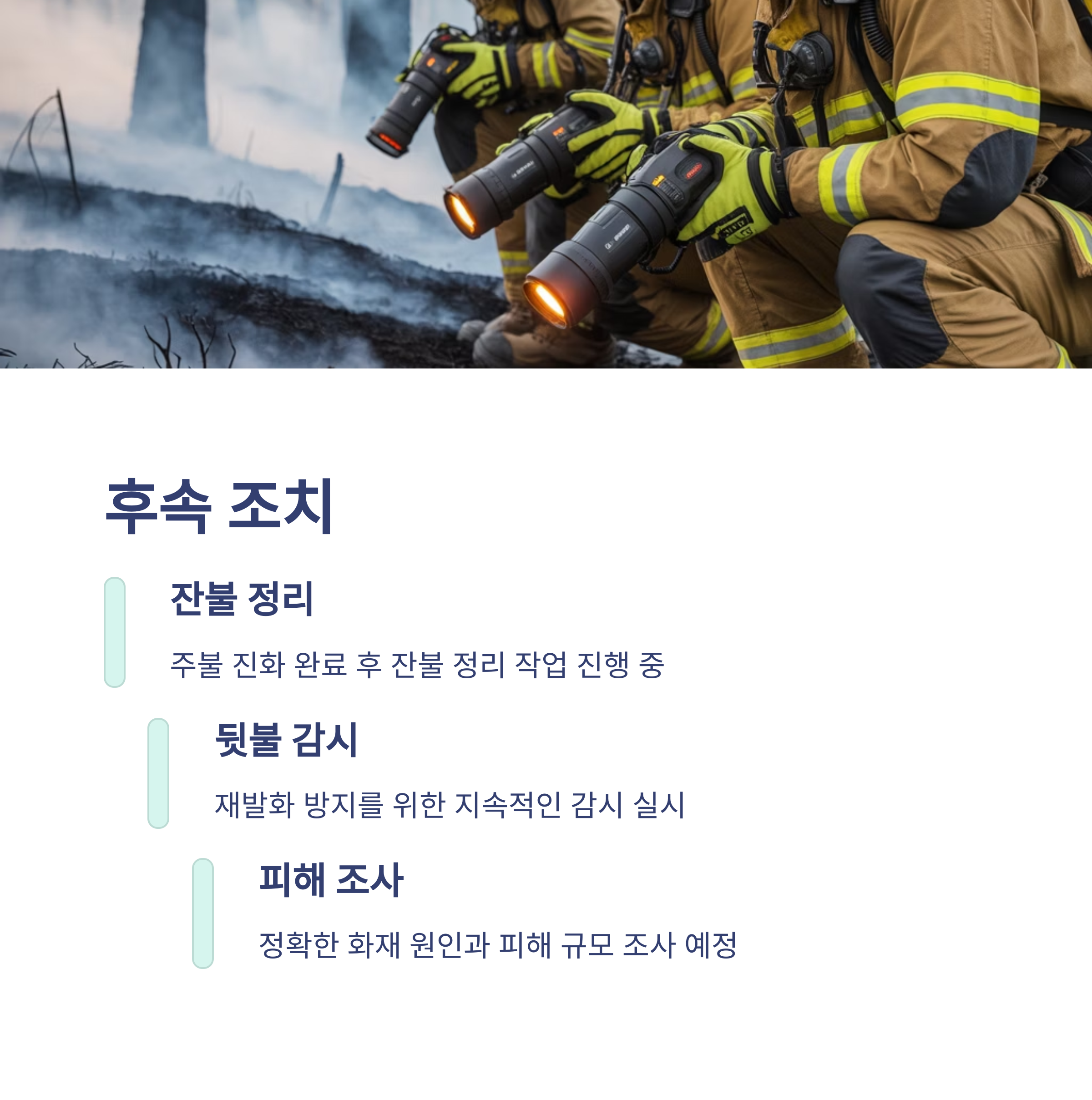이후에도 잔불 정리와 재발화 방지를 위한 뒷불 감시 작업이 이어지고 있어, 현재까지 추가 확산은 없는 상태입니다.