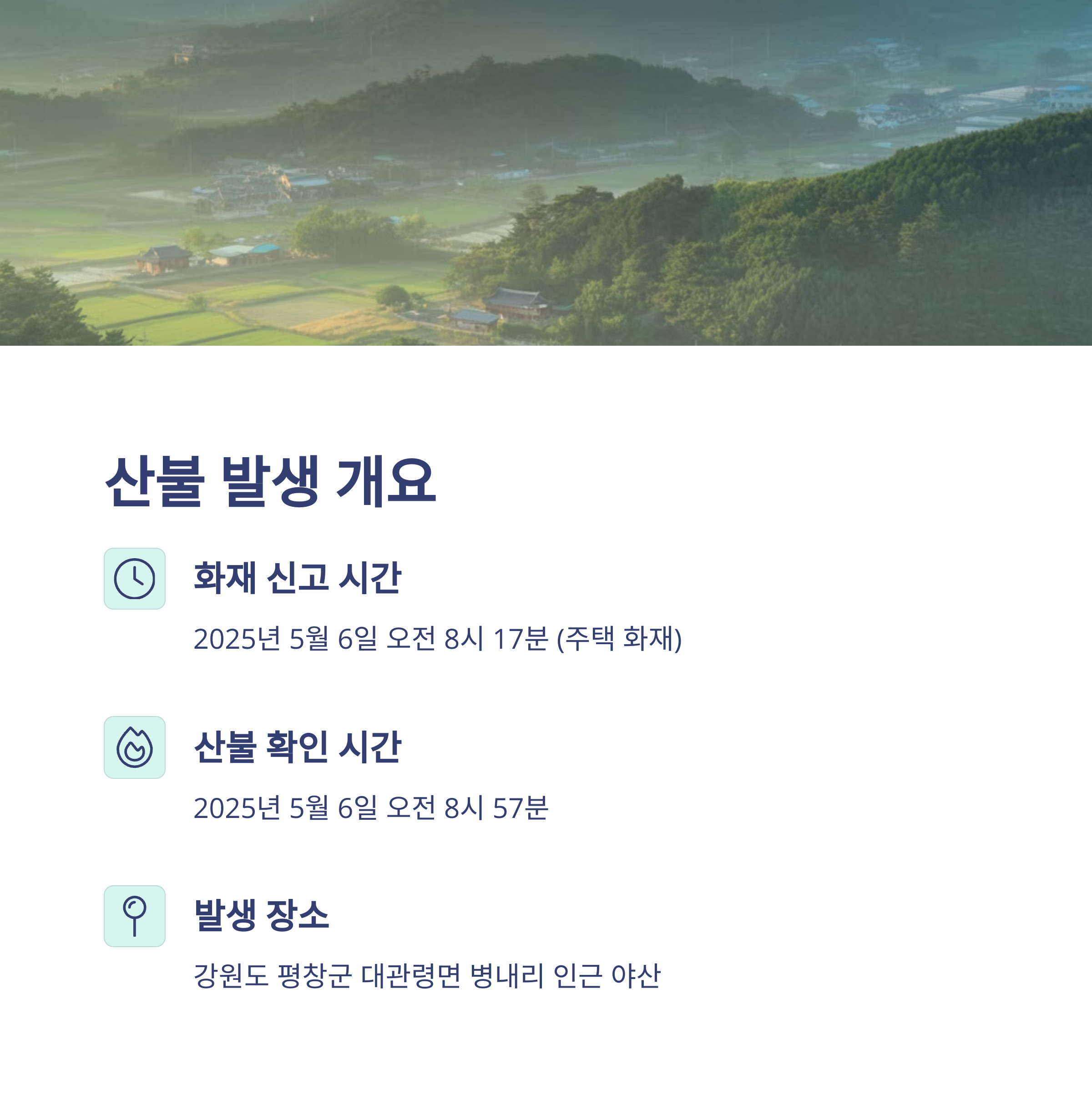 2025년 5월 6일 오전 8시 17분, 강원도 평창군 대관령면 병내리에서 주택 화재가 발생하며 평화로운 아침을 깨웠습니다.