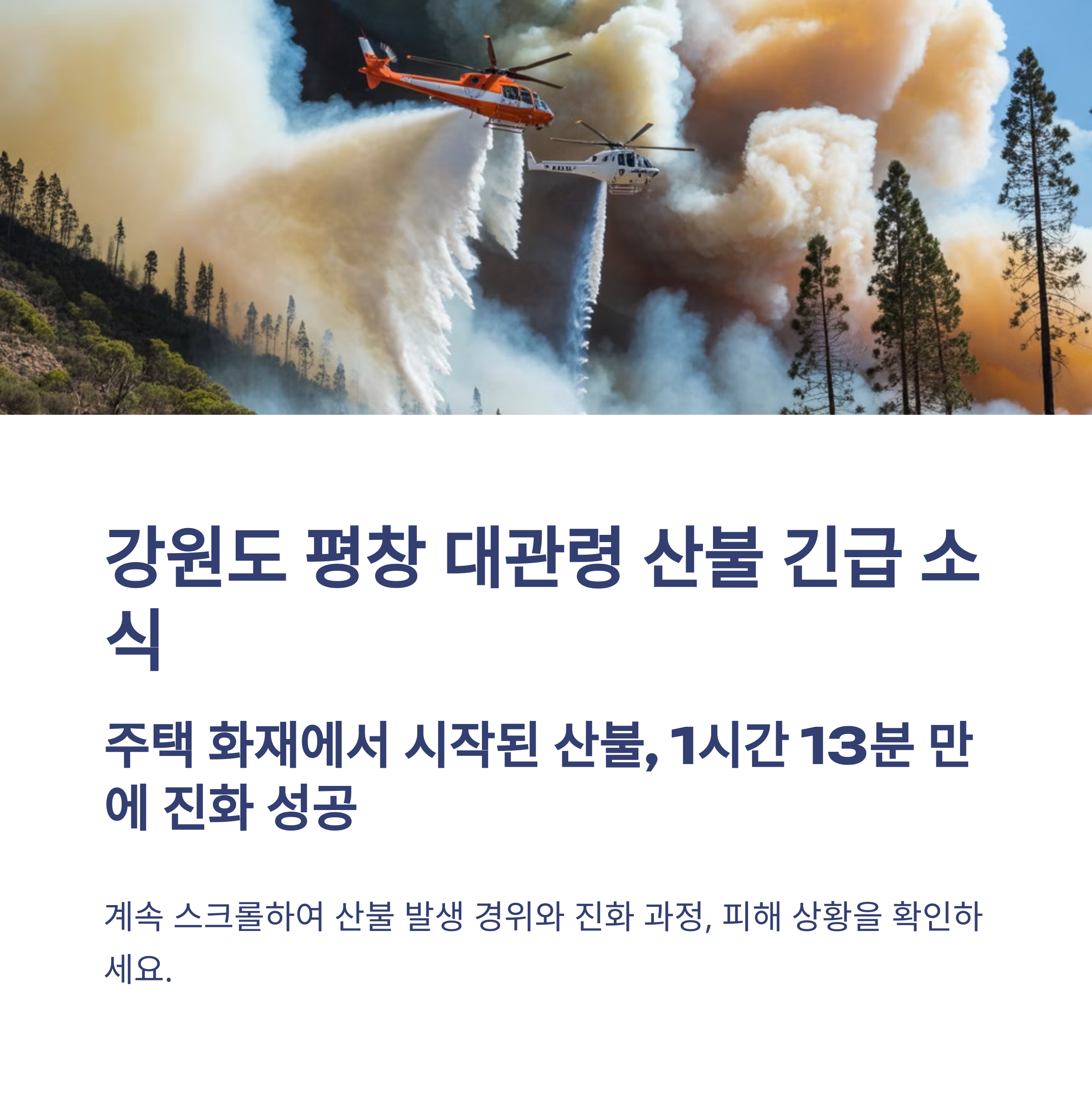 오늘은 평창 대관령에서 발생한 산불과 그 진화 과정을 함께 살펴보았습니다.