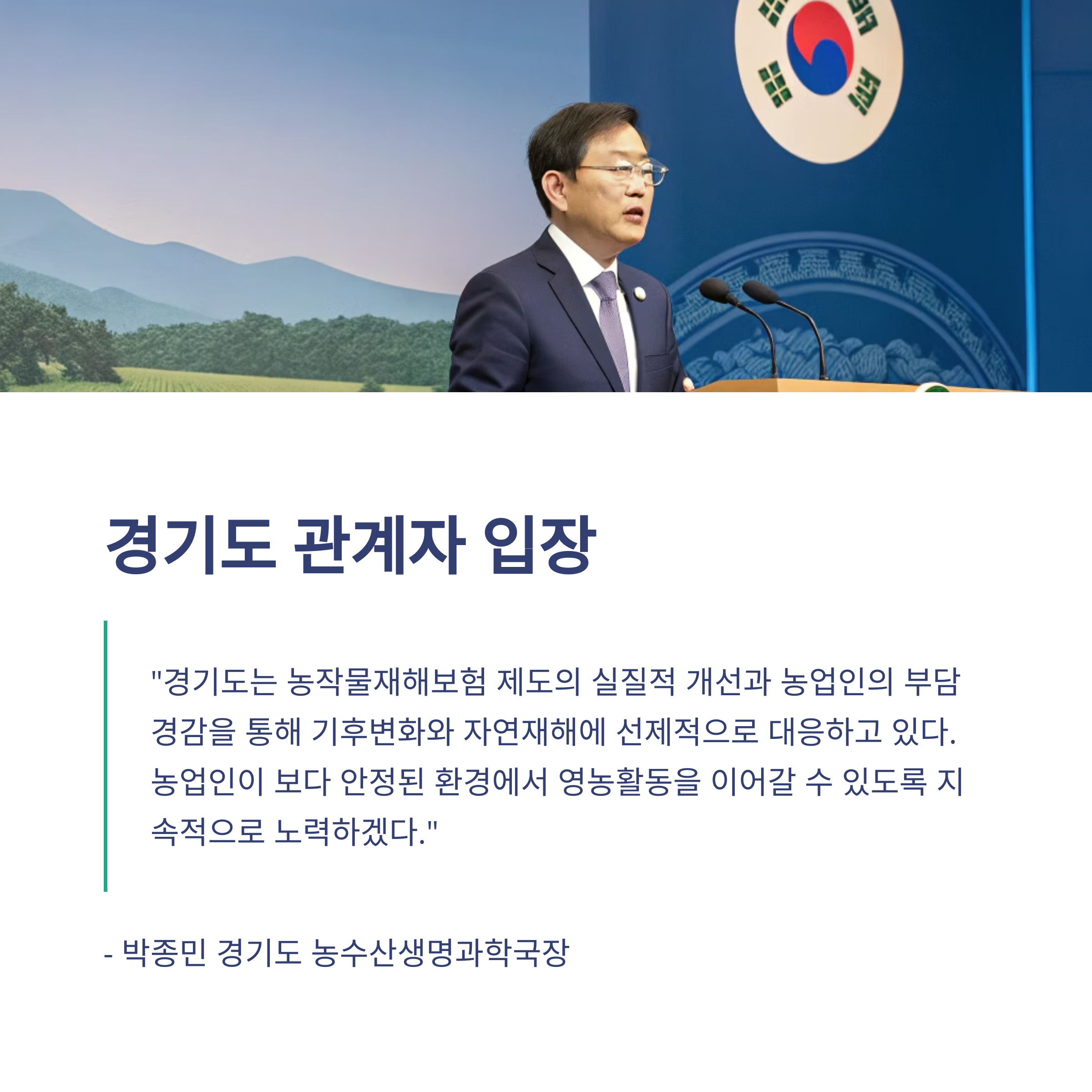 앞으로도 경기도는 현장의 목소리를 반영한 제도 개선과 농업인의 권익 보호를 위해 지속적으로 노력할 계획입니다.