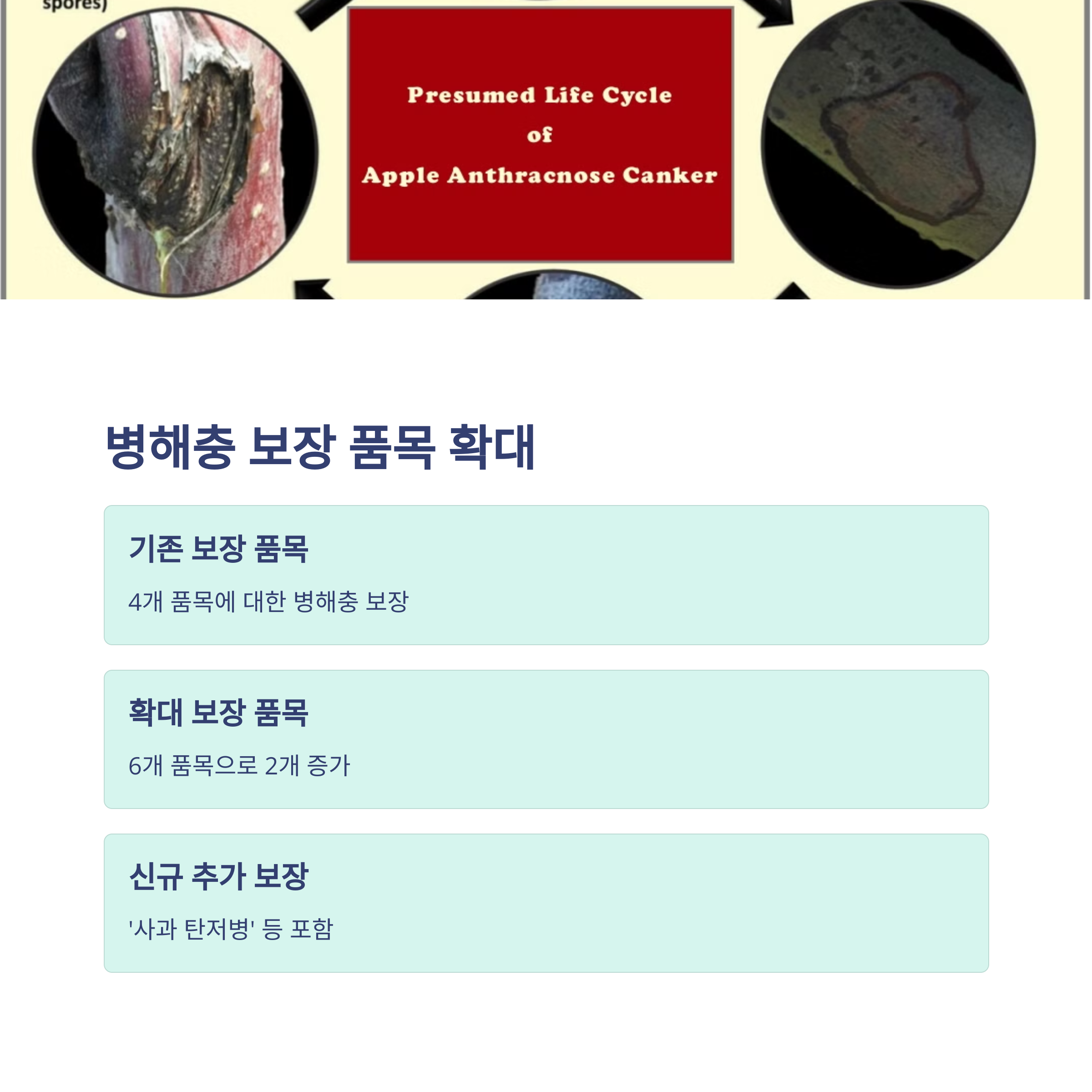 | 확대된 병해충 보장 품목 | 6개 (사과 탄저병 등 추가) |