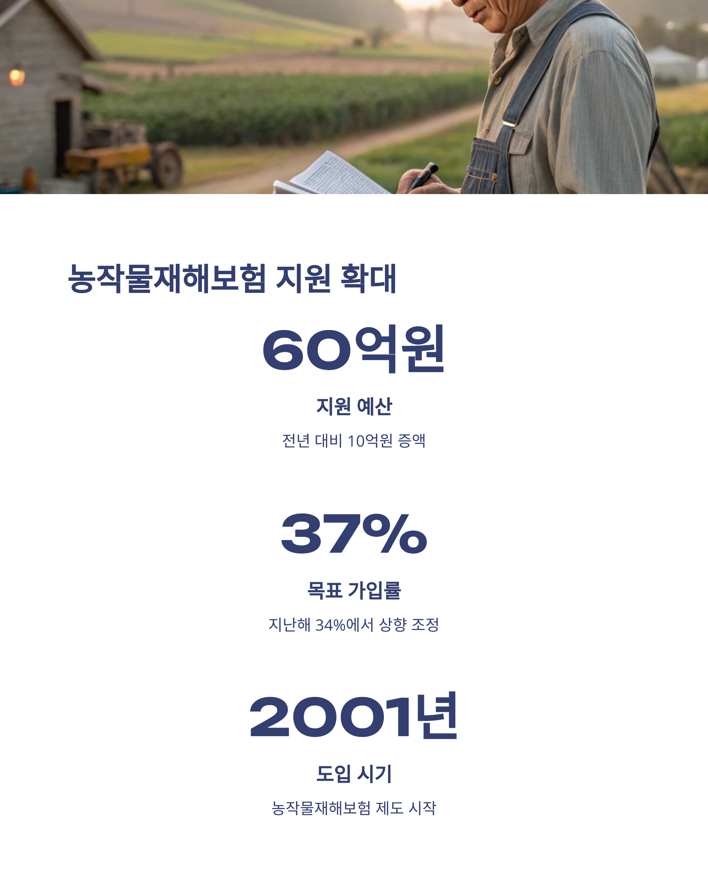여러분의 안정적인 영농 활동을 위한 첫걸음, 바로 농작물재해보험 가입입니다!