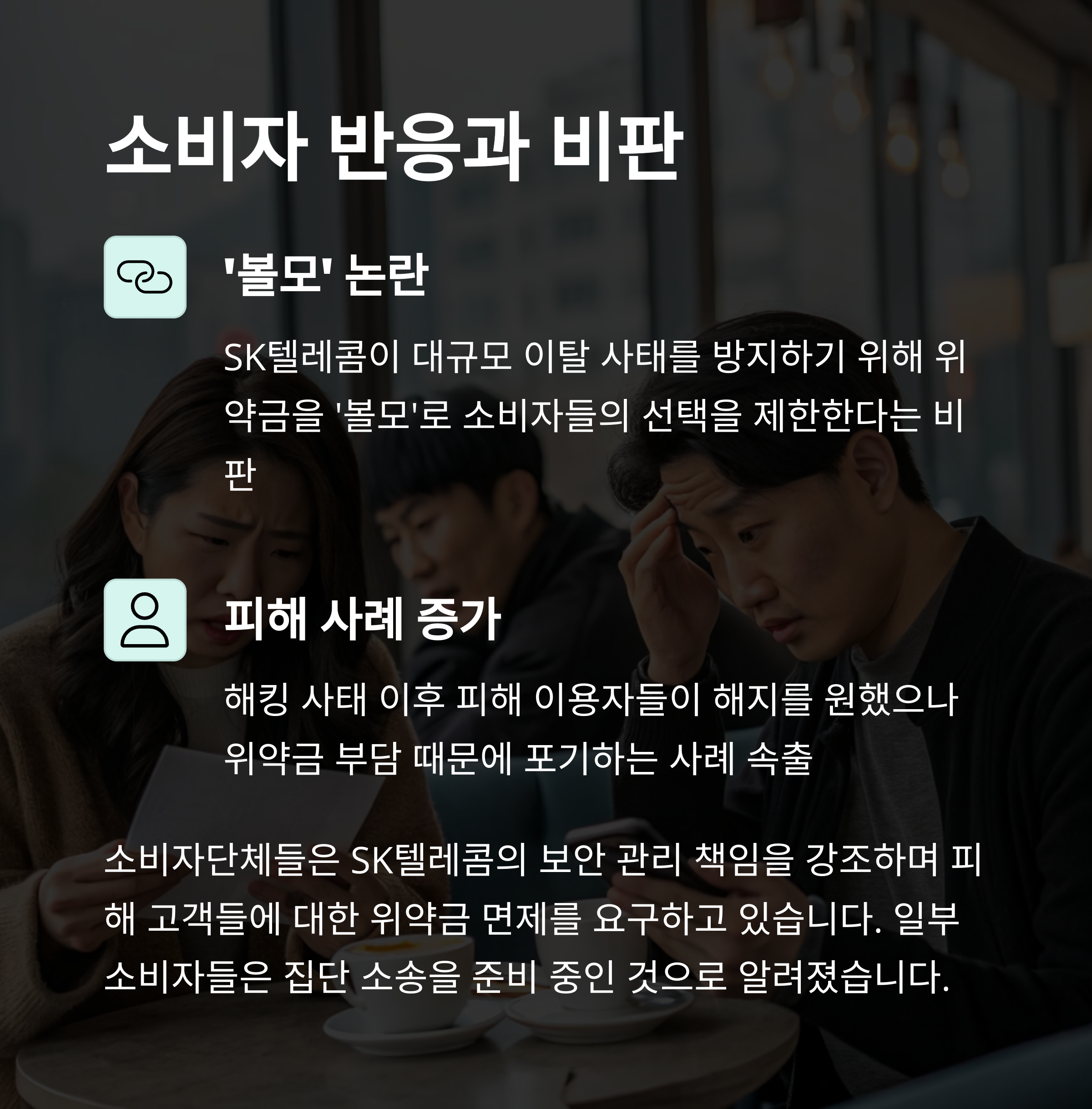 현재로서는 SK텔레콤이 위약금 문제를 민사 분쟁 형태로 대응할 가능성이 크지만, 그럴 경우 여론은 더욱 악화될 수 있습니다.