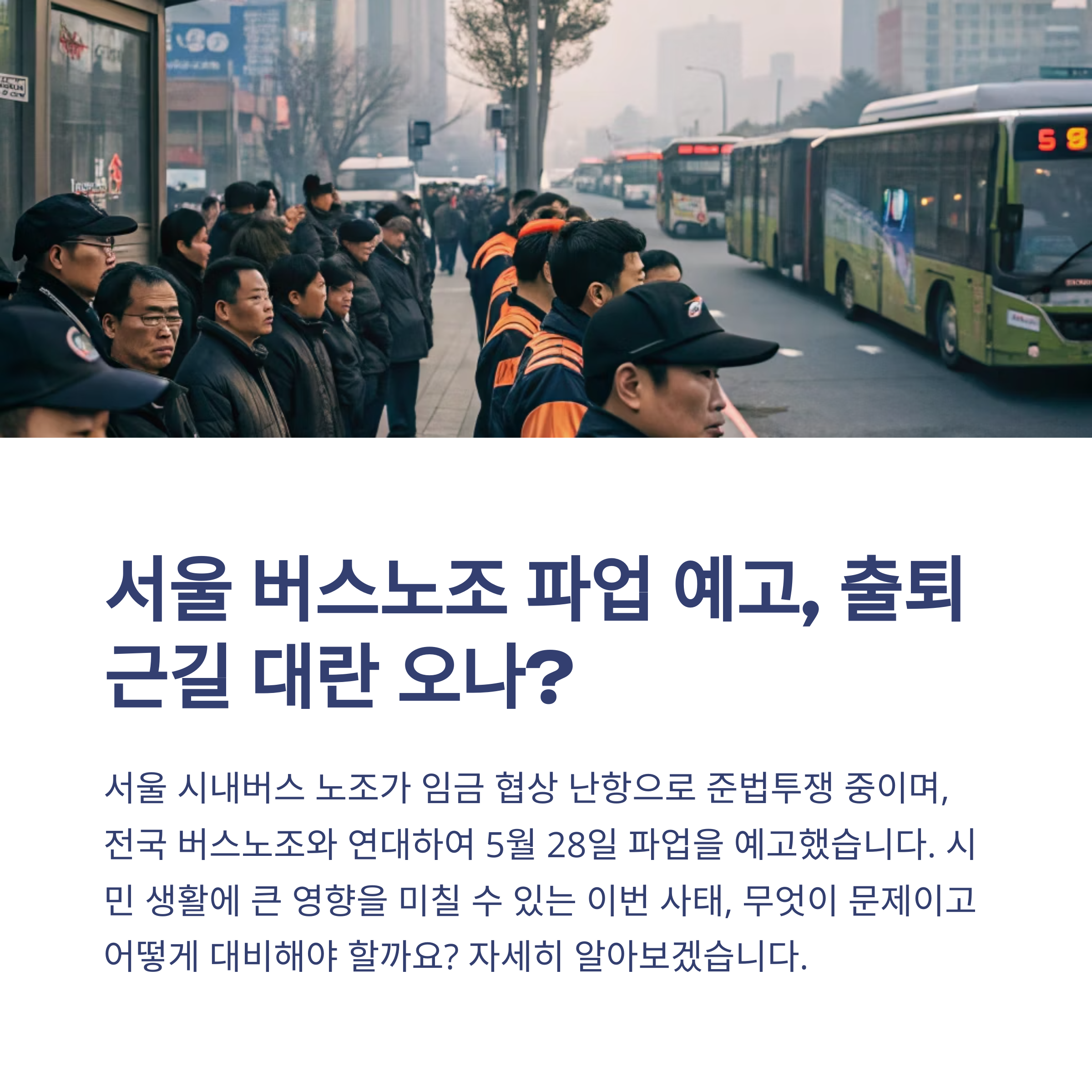 안녕하세요 여러분! 혹시 최근 서울 시내버스를 기다리면서 “왜 이렇게 늦지?” 하고 느끼신 적 있으신가요? 바로 그 이유, 지금 서울 지역 버스노조의 움직임과 깊은 관련이 있어요. 오늘은 시민 생활에 직결되는 서울 버스노조의 현재 상황과 전국 파업 예고에 대해 함께 자세히 들여다볼게요. 이 글을 통해 지금 벌어지고 있는 이슈를 정확하게 이해하고, 앞으로 우리가 어떻게 준비해야 할지도 함께 생각해보면 좋겠습니다.
