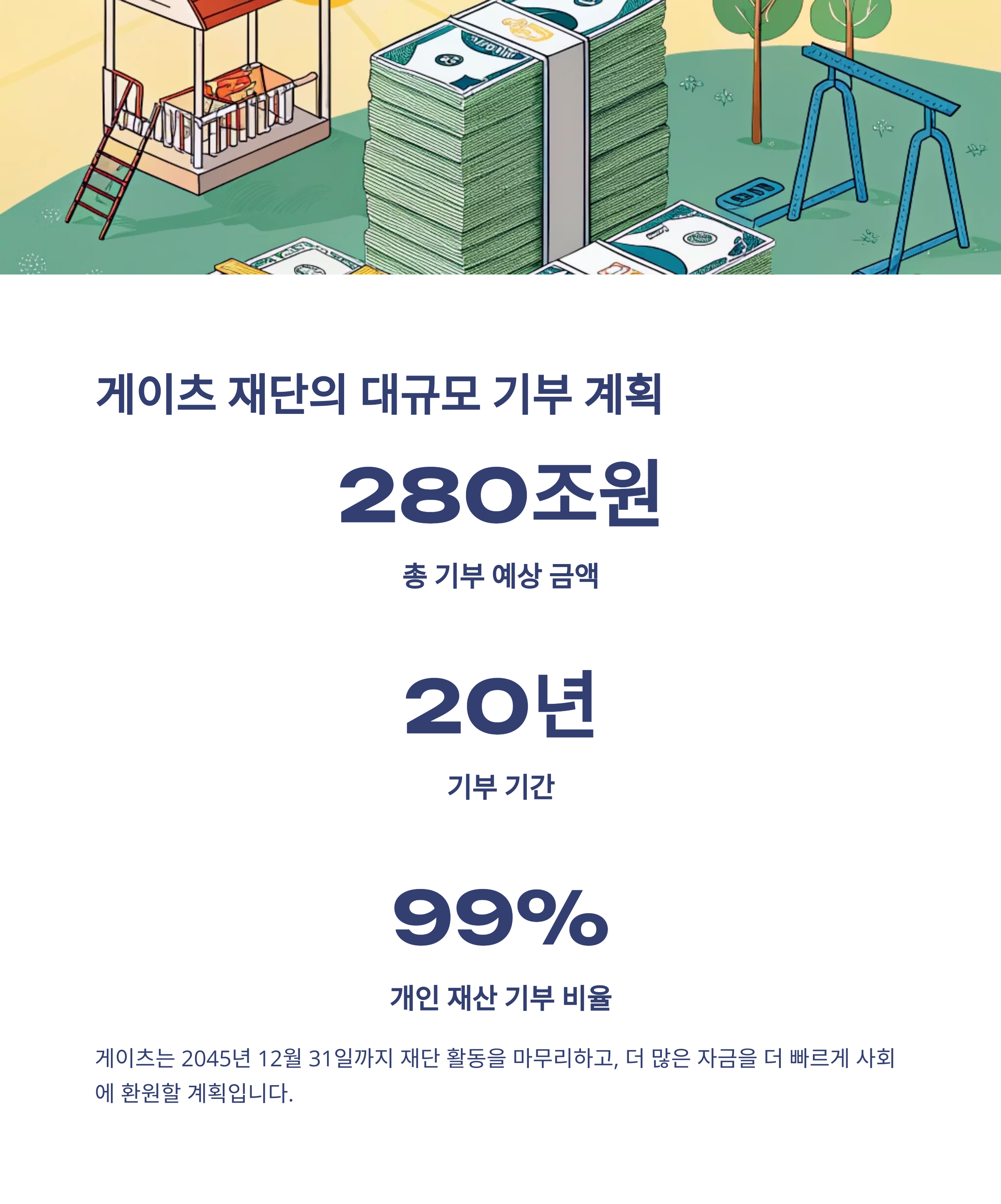 안녕하세요 여러분! 혹시 이런 생각 해보신 적 있으신가요? ‘저 많은 돈을 다 어디에 쓰는 걸까?’ 하고요. 그런데 여기, 그 막대한 재산을 세상을 더 나은 방향으로 쓰겠다고 결심한 사람이 있습니다. 바로 마이크로소프트 창업자, 빌 게이츠입니다. 그는 이번에 “부유하게 죽지 않겠다”며 무려 280조원 규모의 사회 환원 계획을 발표했는데요, 오늘은 이 엄청난 결정의 배경과 의미를 함께 살펴보려고 합니다. 지금부터 끝까지 함께해 주세요!