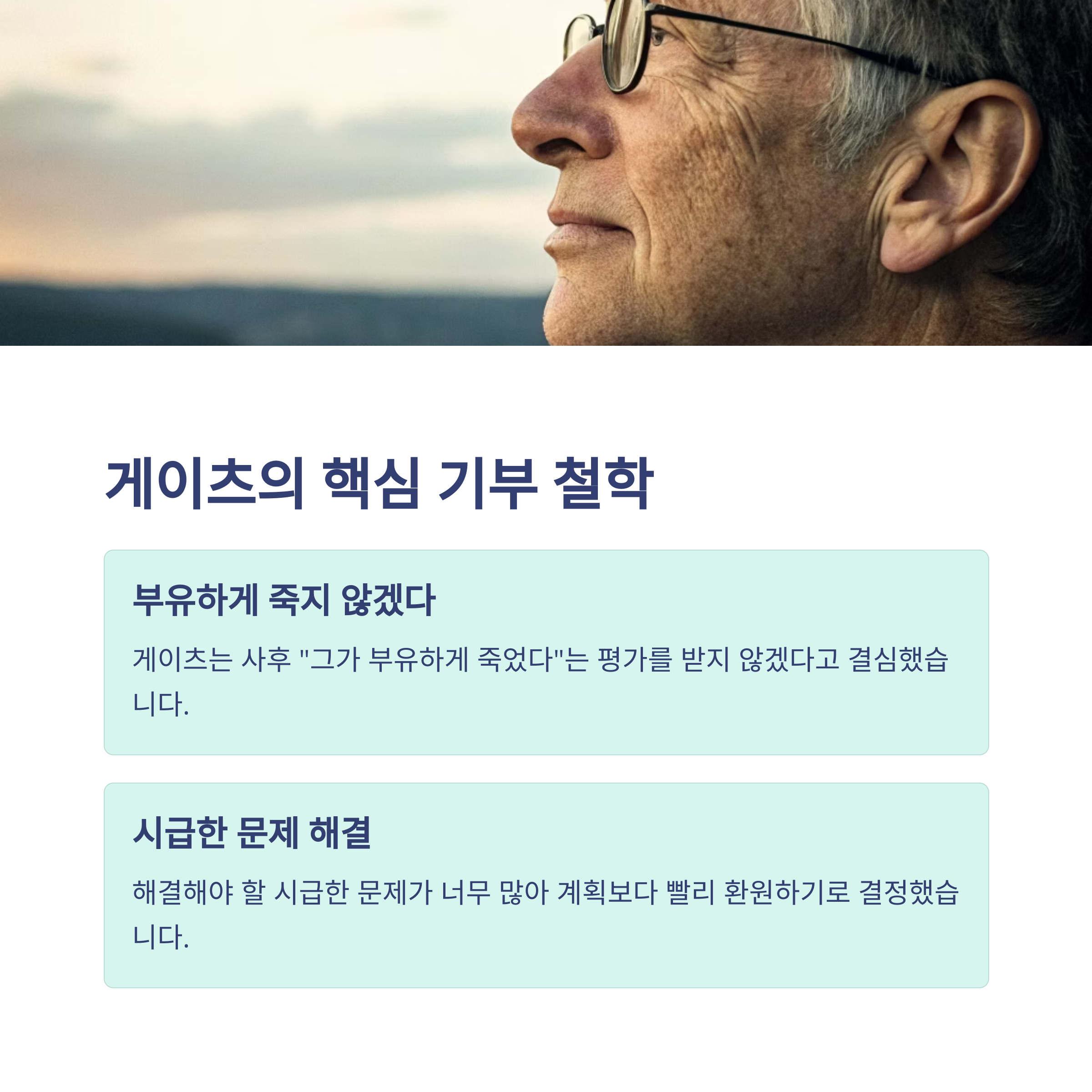 일부는 기부 서약(The Giving Pledge)을 통해 재산을 나누고 있지만, 게이츠처럼 생애 전반에 걸쳐 적극적으로 환원하는 사례는 드물어요.