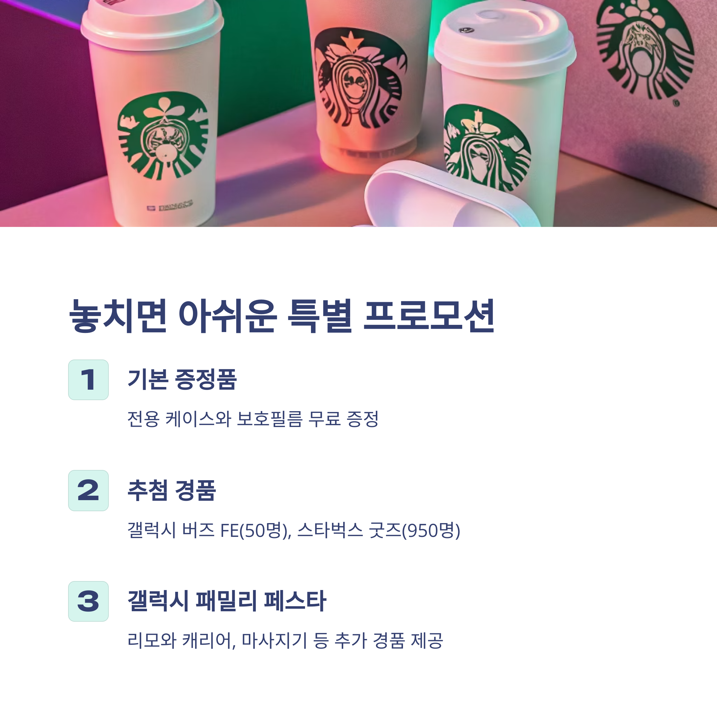 - ✔ 개통 고객 중 추첨 1,000명 경품 증정: 갤럭시 버즈 FE(50명), 스타벅스 굿즈(950명)