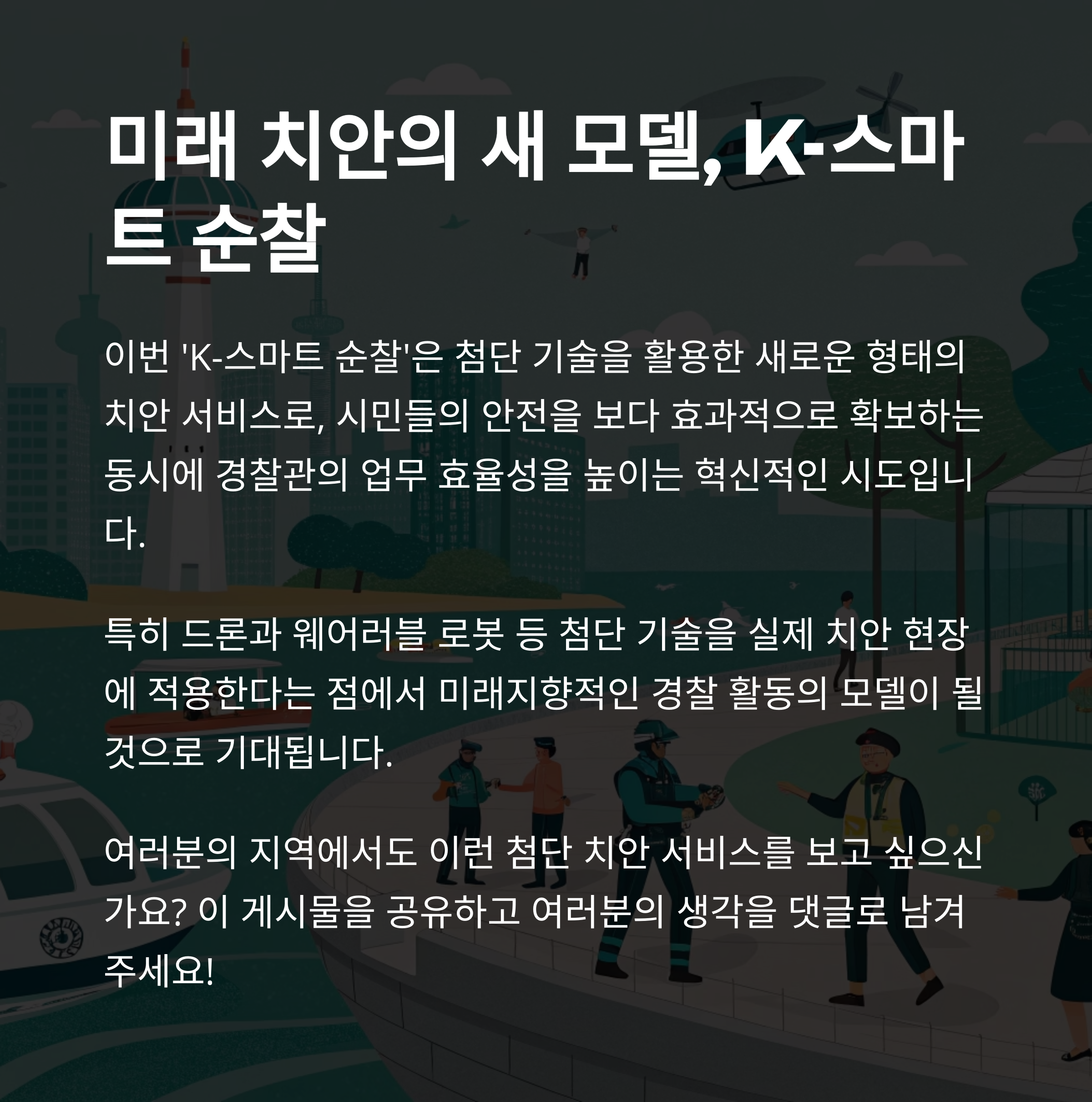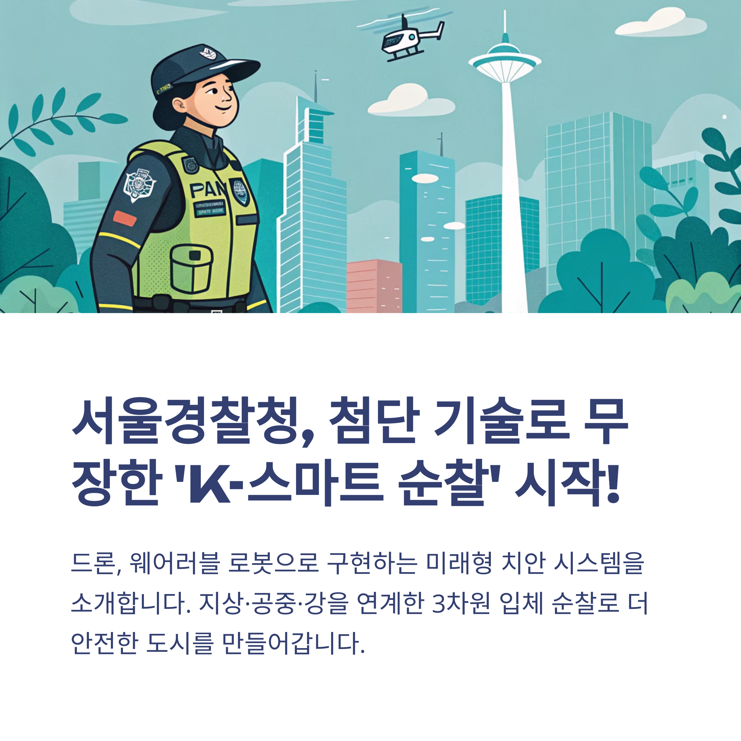 Tags: K스마트순찰, 서울경찰청, 웨어러블로봇, 드론순찰, 여의도치안, 한강공원안전, 첨단치안기술, 입체순찰, 스마트시티, 미래경찰
