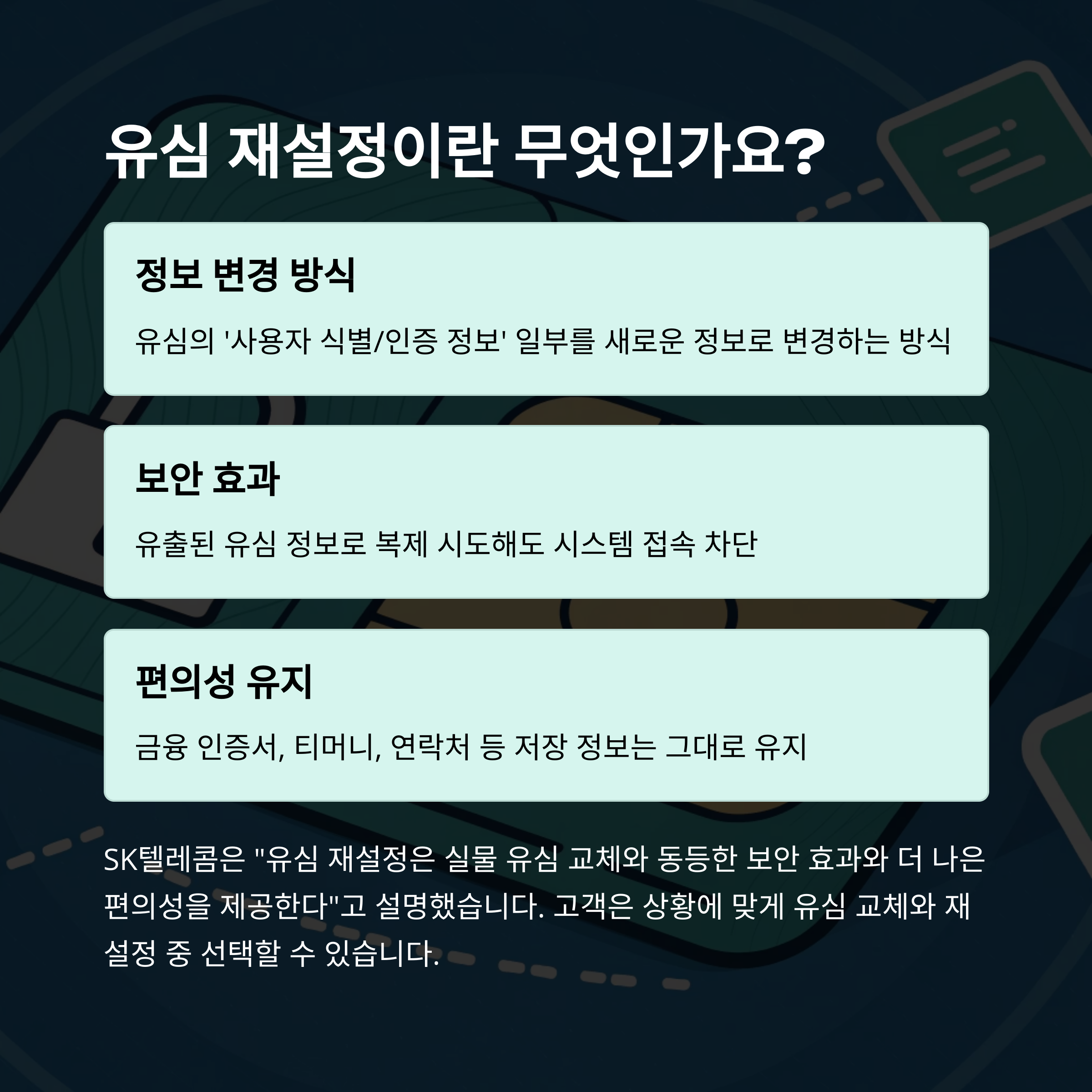 보안 효과는 실물 유심 교체와 동일하여 기존 유심 정보로는 접속이 차단됩니다.