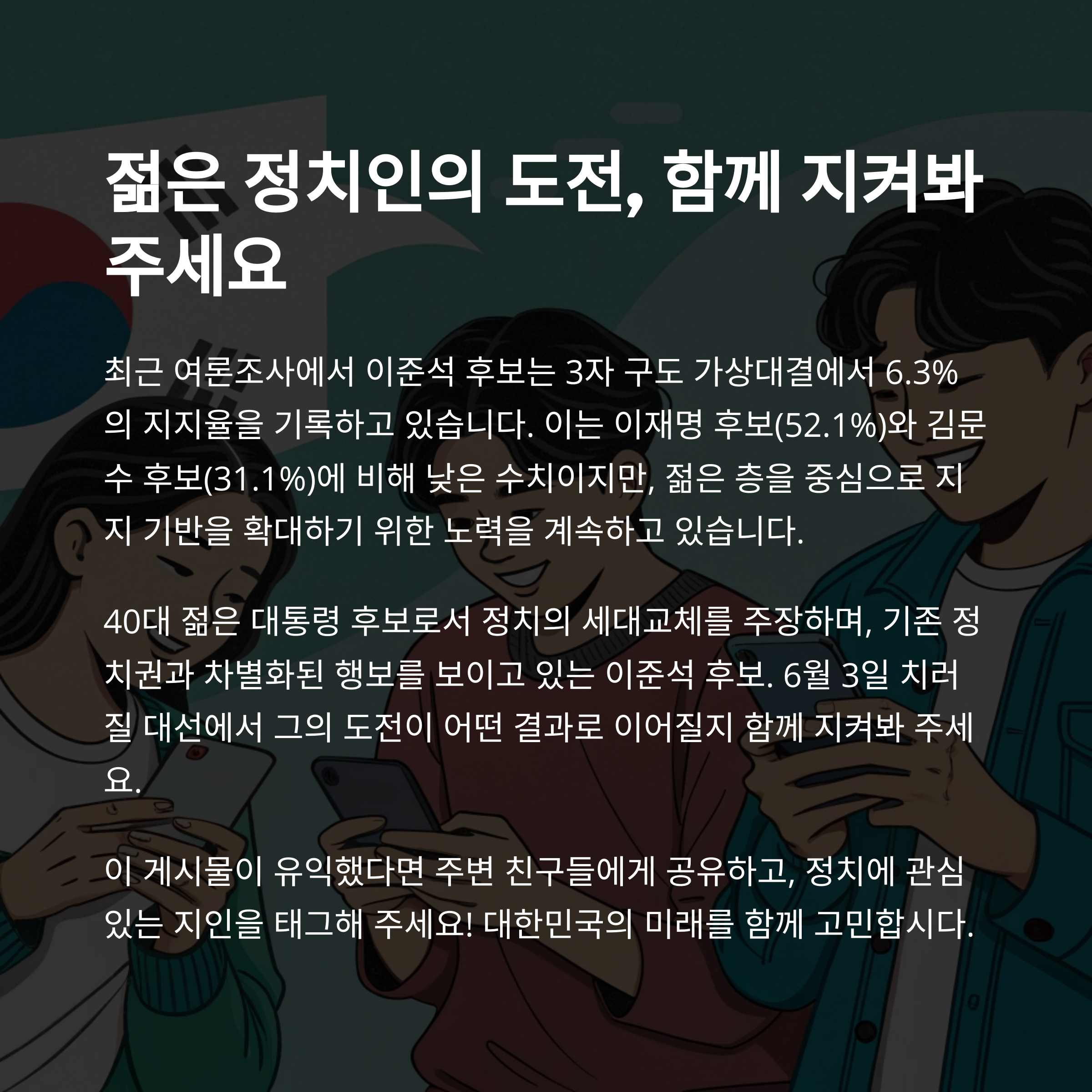 정치가 우리 삶과 얼마나 가까운지, 요즘 들어 자주 느끼게 됩니다. 그래서일까요, 이준석 후보처럼 기존의 틀을 깨려는 도전이 반갑기도 하더라고요. 물론 아직 그의 정치 여정엔 수많은 장애물이 남아 있지만, '진짜로 바꾸고 싶은 사람'이 있다는 것 자체가 큰 의미 아닐까요? 이 글이 여러분께 새로운 시선 하나쯤은 전해드렸다면 좋겠습니다. 이준석 후보의 행보를 지켜보며 우리도 함께 고민해보아요. 과연 어떤 정치가 우리에게 더 나은 미래를 줄 수 있을지 말이에요.