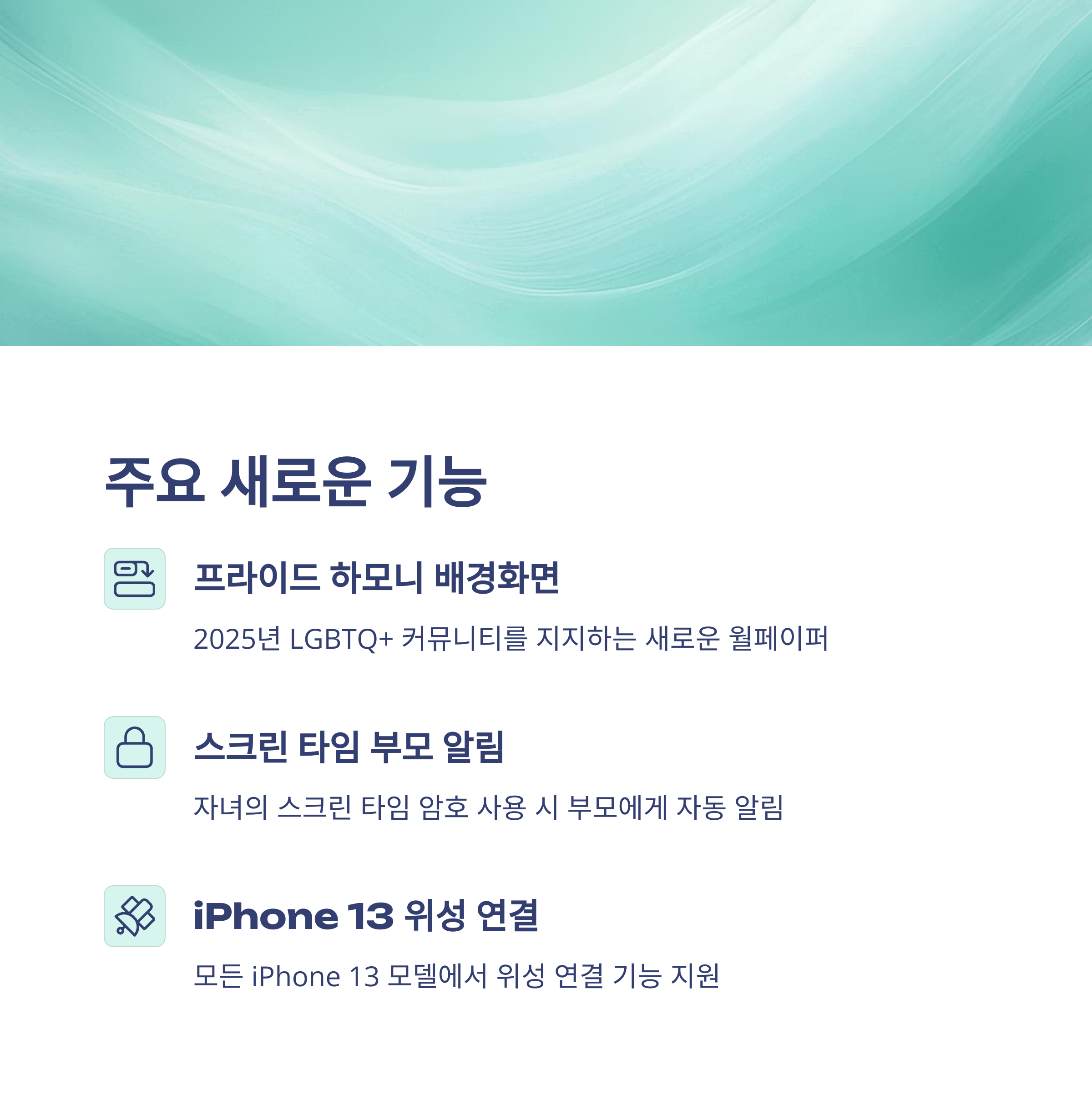 iOS 18.5, 애플 업데이트, 아이폰 기능, 프라이드 배경화면, 스크린 타임, 위성 연결, Apple Mail 개선, Apple TV, 소프트웨어 업데이트, iPhone 13