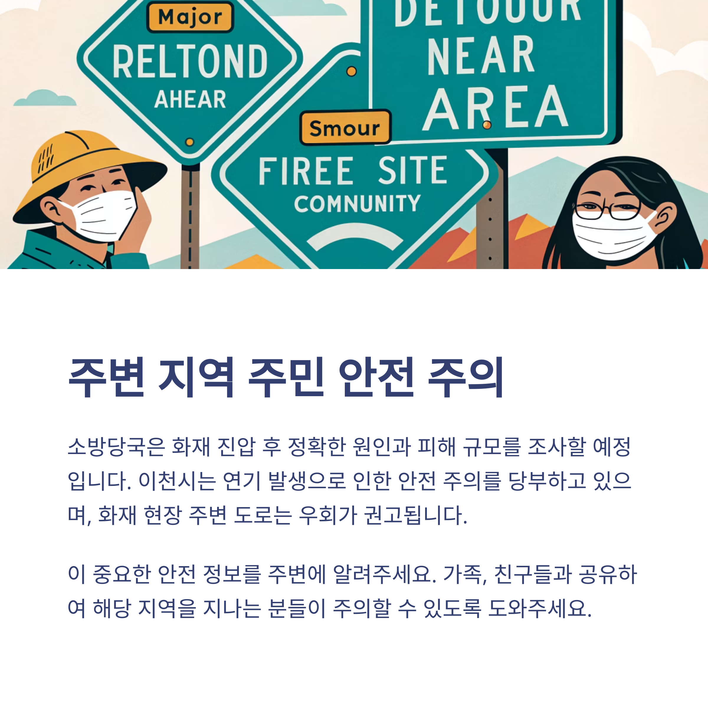 화재로 인한 연기 피해도 심각했습니다. 도로 위를 지나던 운전자들의 119 신고가 20건 이상 접수되었고, 연기로 인해 하늘은 잿빛으로 변해 마치 장마철 스모그 같은 분위기가 연출되었죠. 이에 이천시는 오전 10시 54분, 재난문자를 발송하여 주민들에게 주의사항을 안내했습니다.