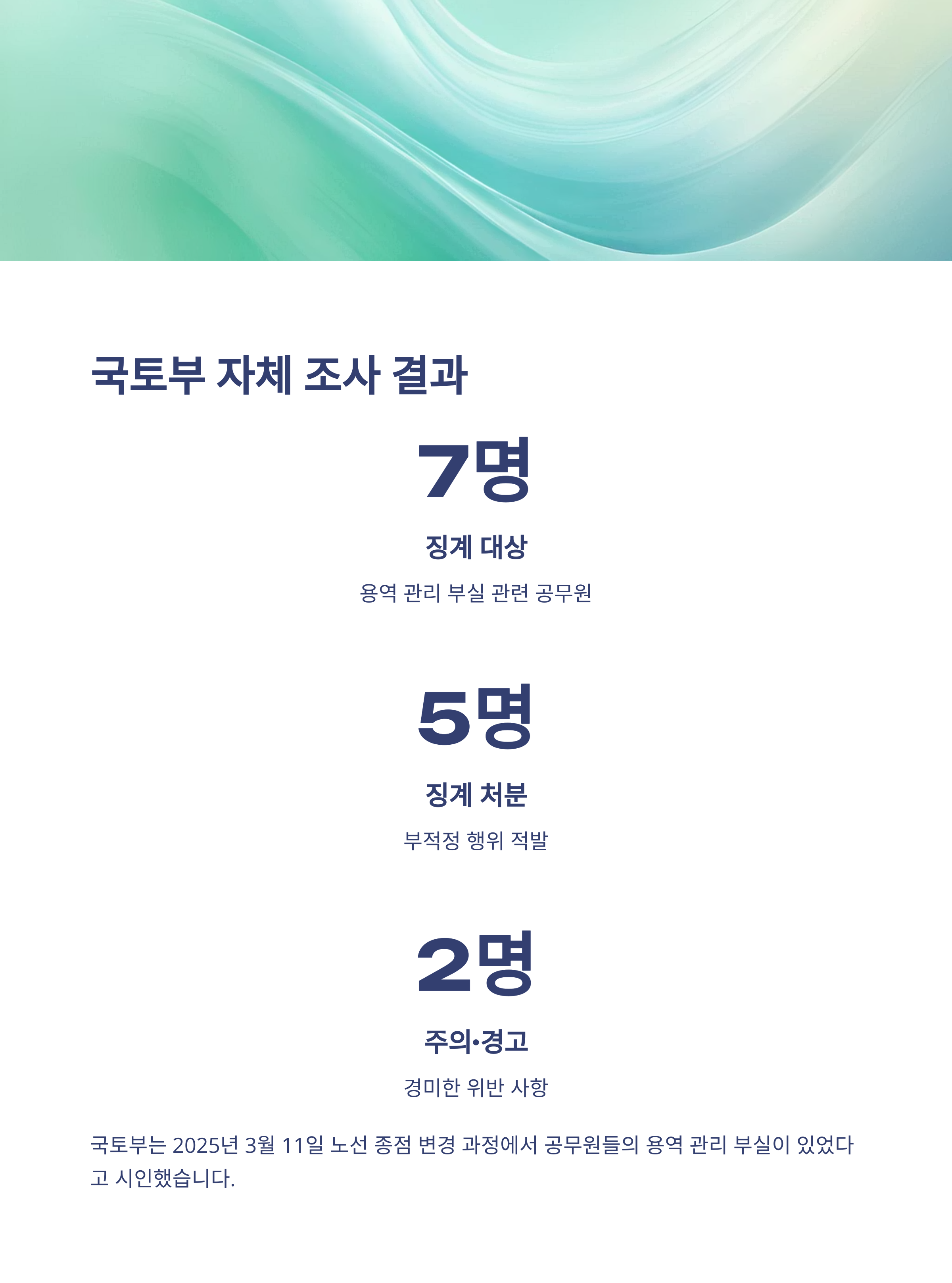 | 국토부 | 2025년 자체 감사 통해 공무원 7명 징계 권고 |