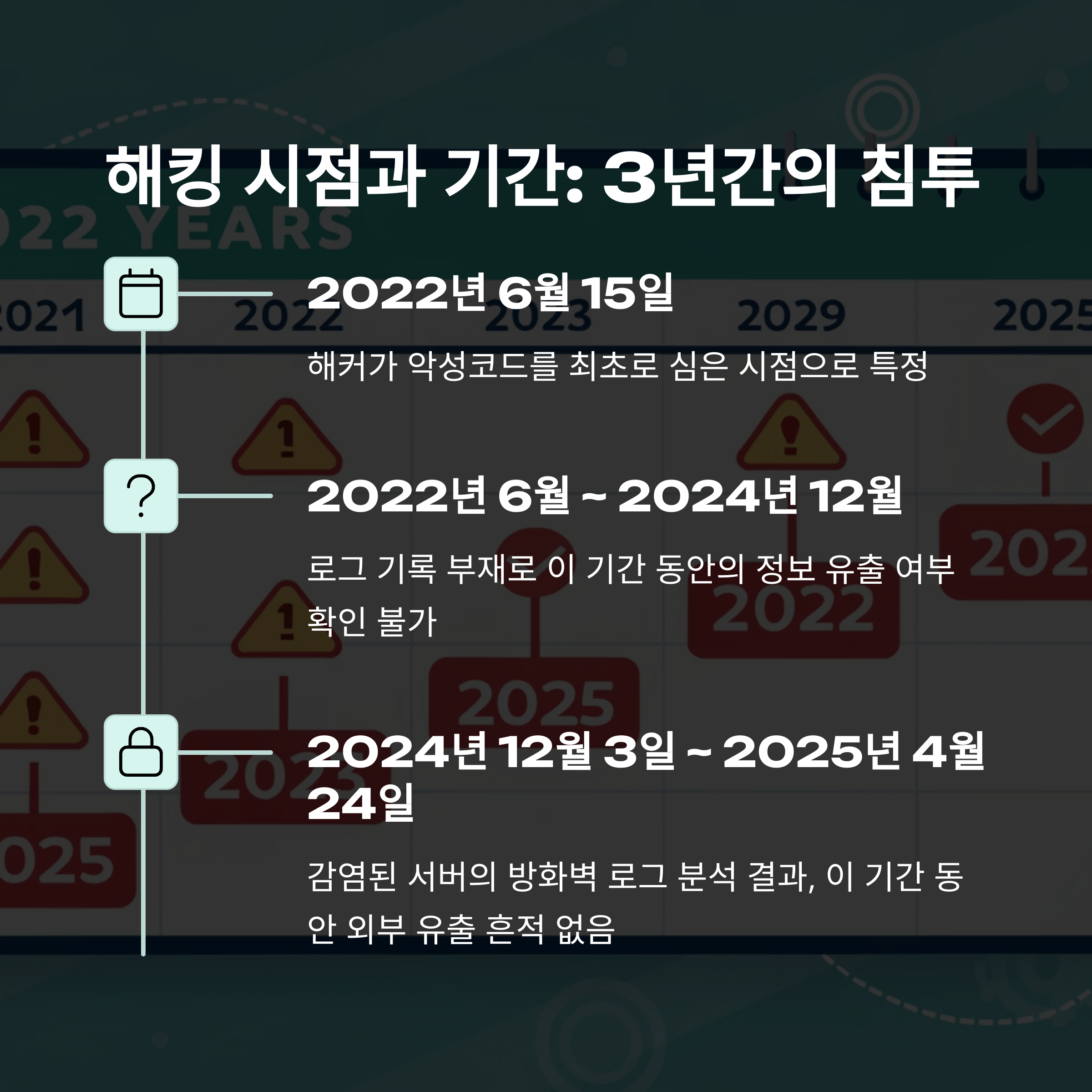 최초 분석과 사실 확인까지 시간이 걸렸고, 민감 정보에 대한 검증을 마친 뒤 발표하는 것이 피해 확산을 막기 위해 더 적절하다고 판단했기 때문입니다.