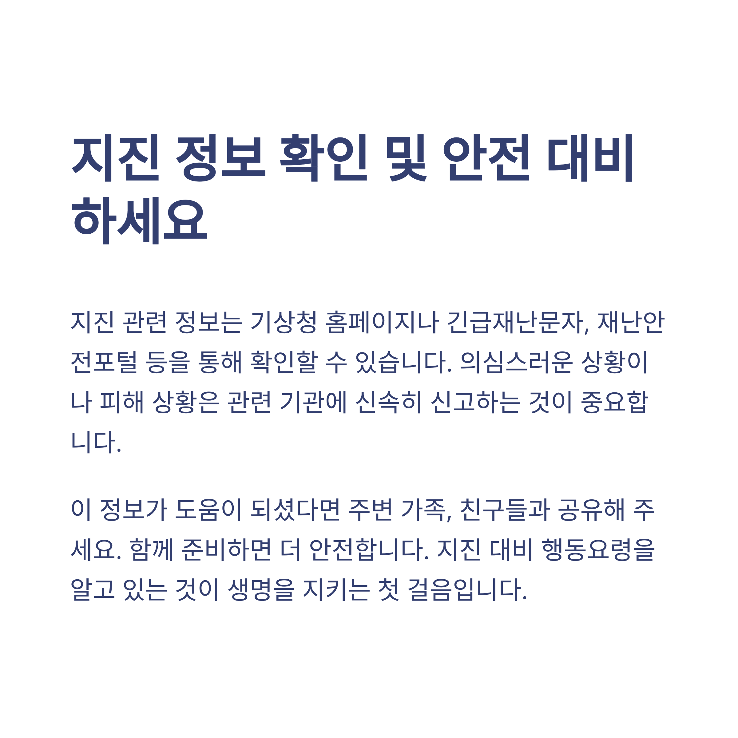 여러분은 이번 지진을 어떻게 느끼셨나요? 혹시 주변에서 진동을 경험하셨거나, 지진에 관련된 경험담이 있다면 댓글로 공유해주세요. 평소에 어떤 대비를 하고 계신지도 궁금합니다. 우리의 작은 정보 공유가 더 큰 안전을 만들 수 있습니다.