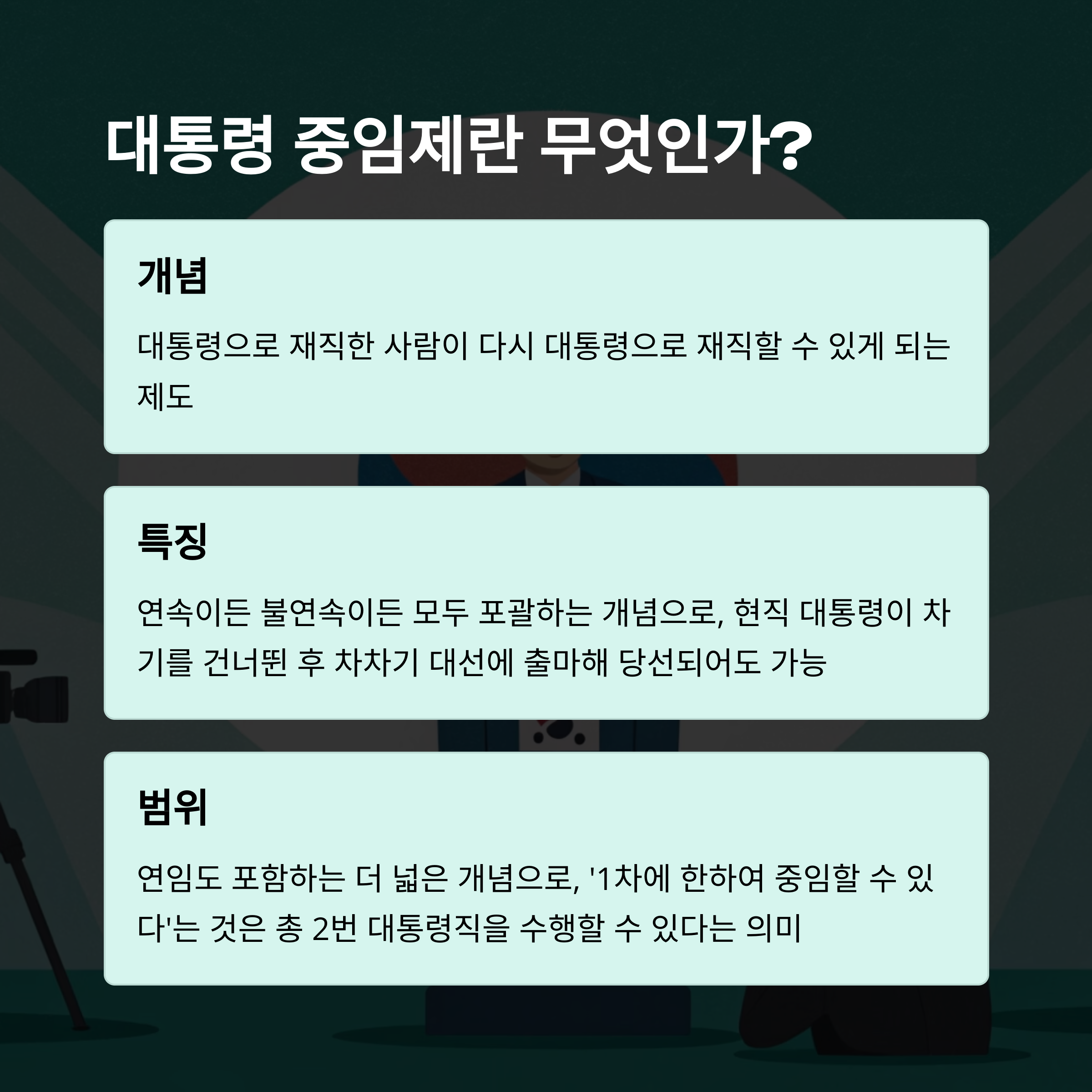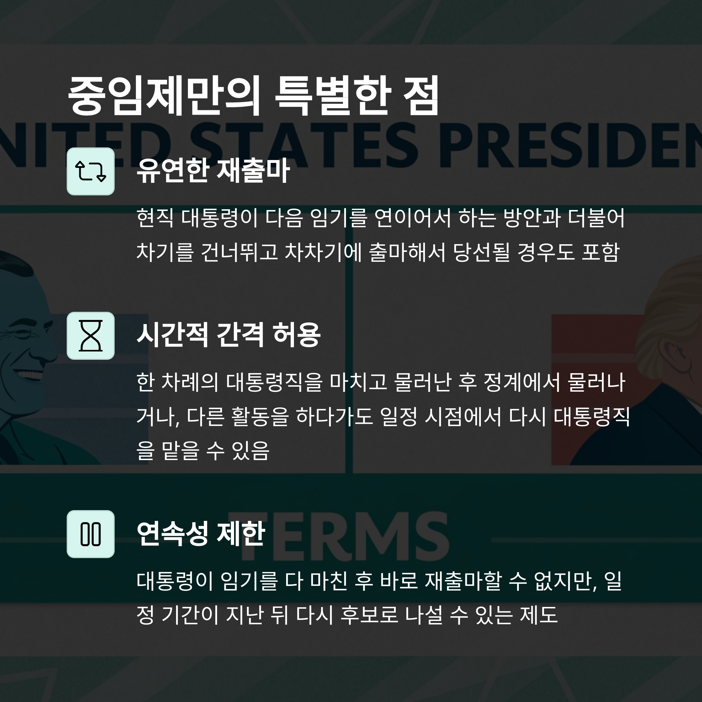 한 번 대통령 했다고 끝? 아니요! 중임제는 그 다음 이야기를 시작합니다.
