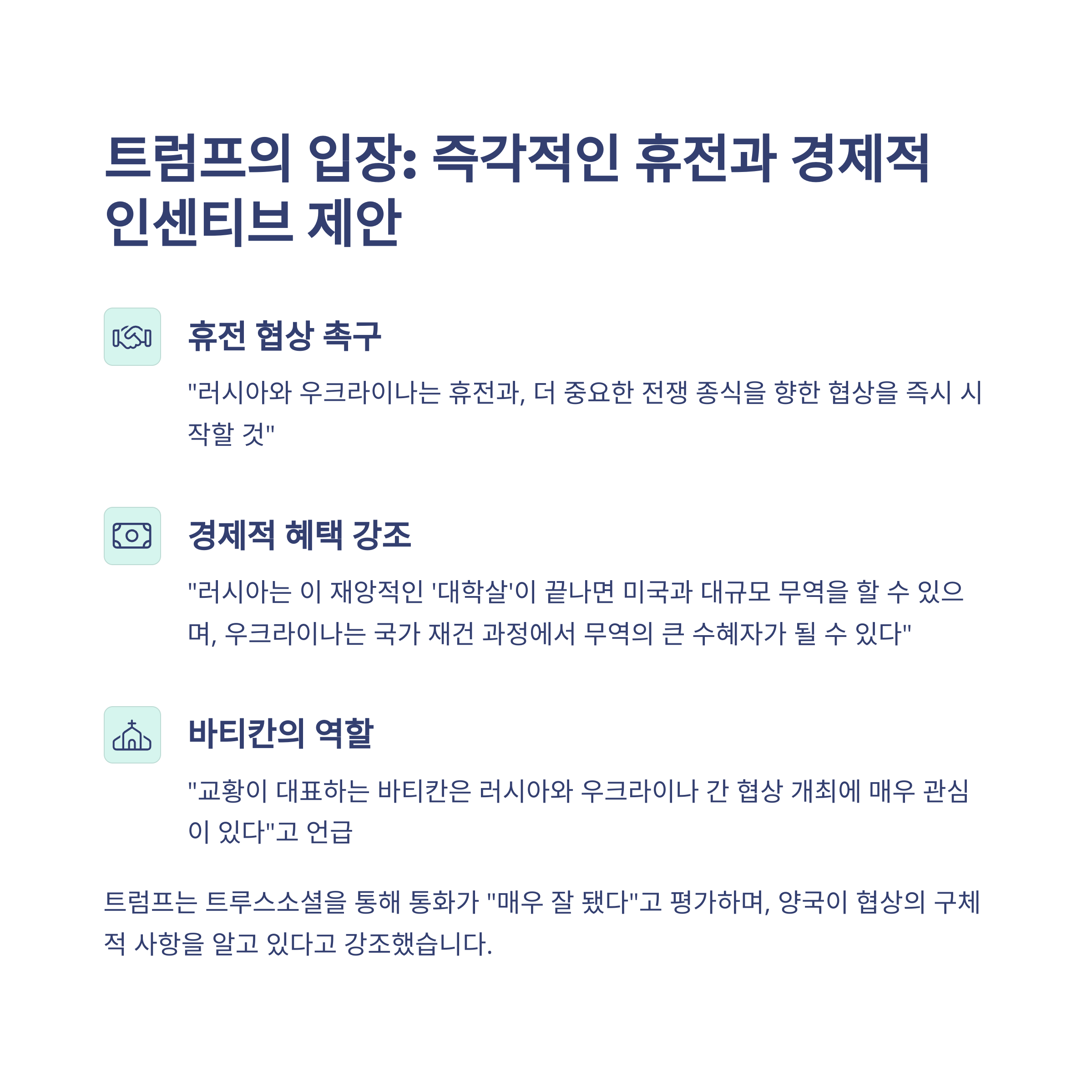트럼프, 푸틴, 우크라이나 전쟁, 정상 통화, 바티칸 중재, 미국 외교, 평화 협상, 젤렌스키, 국제 정치, 경제 인센티브